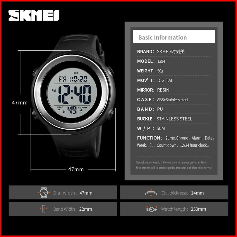 Jam Tangan Pria Digital Skmei 1394 Black Silver Water Resistant 50m