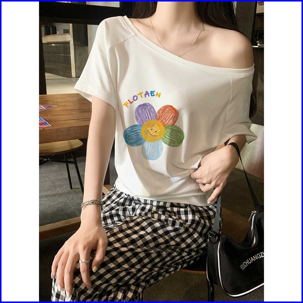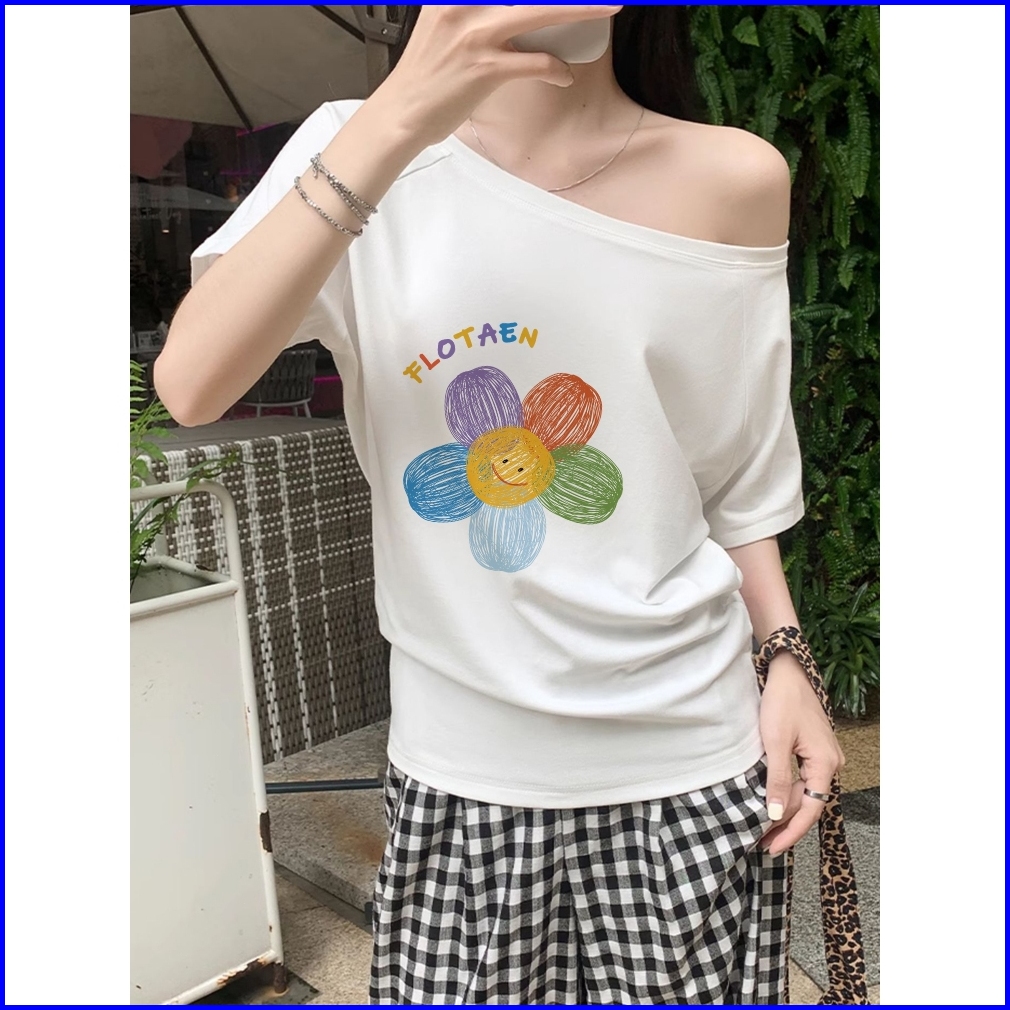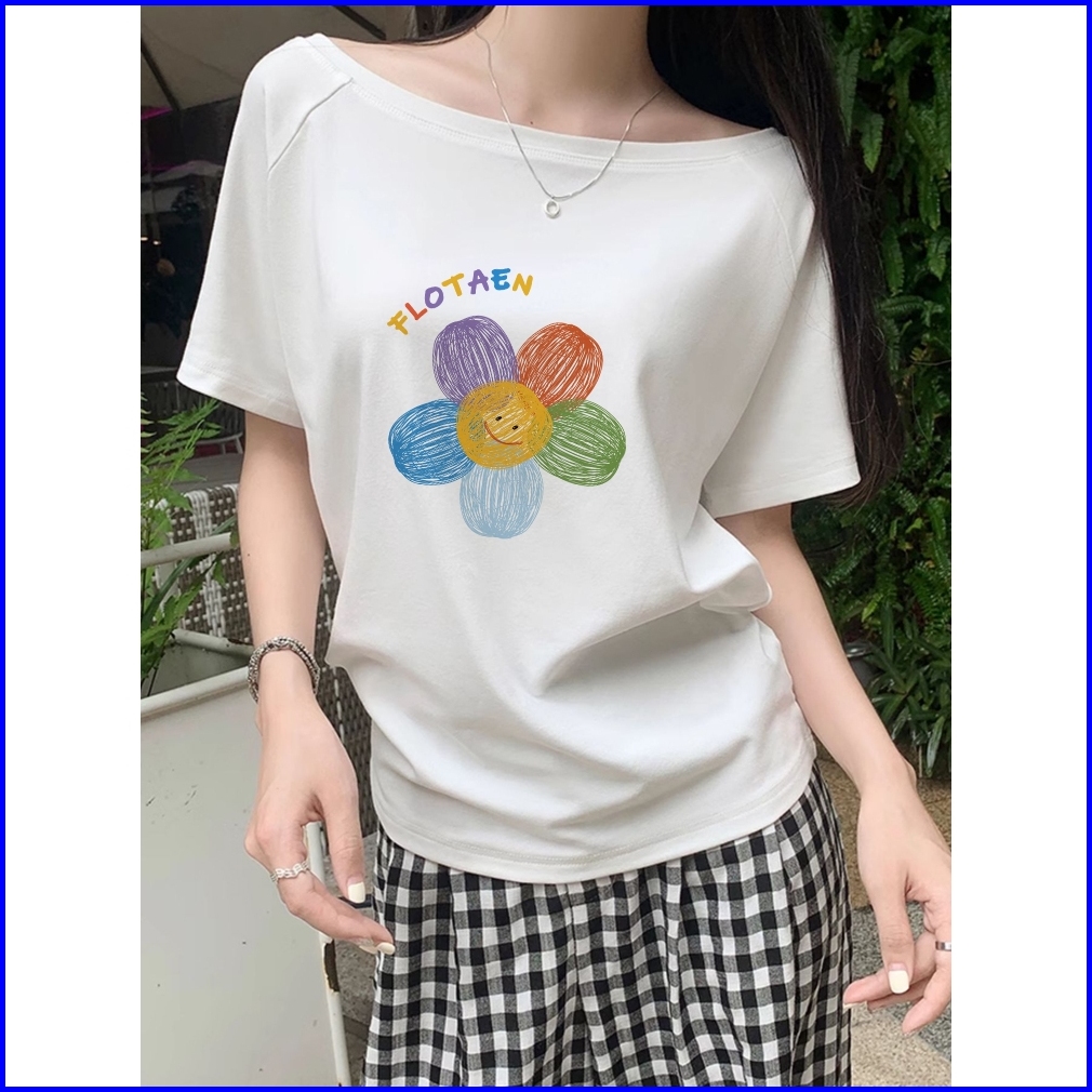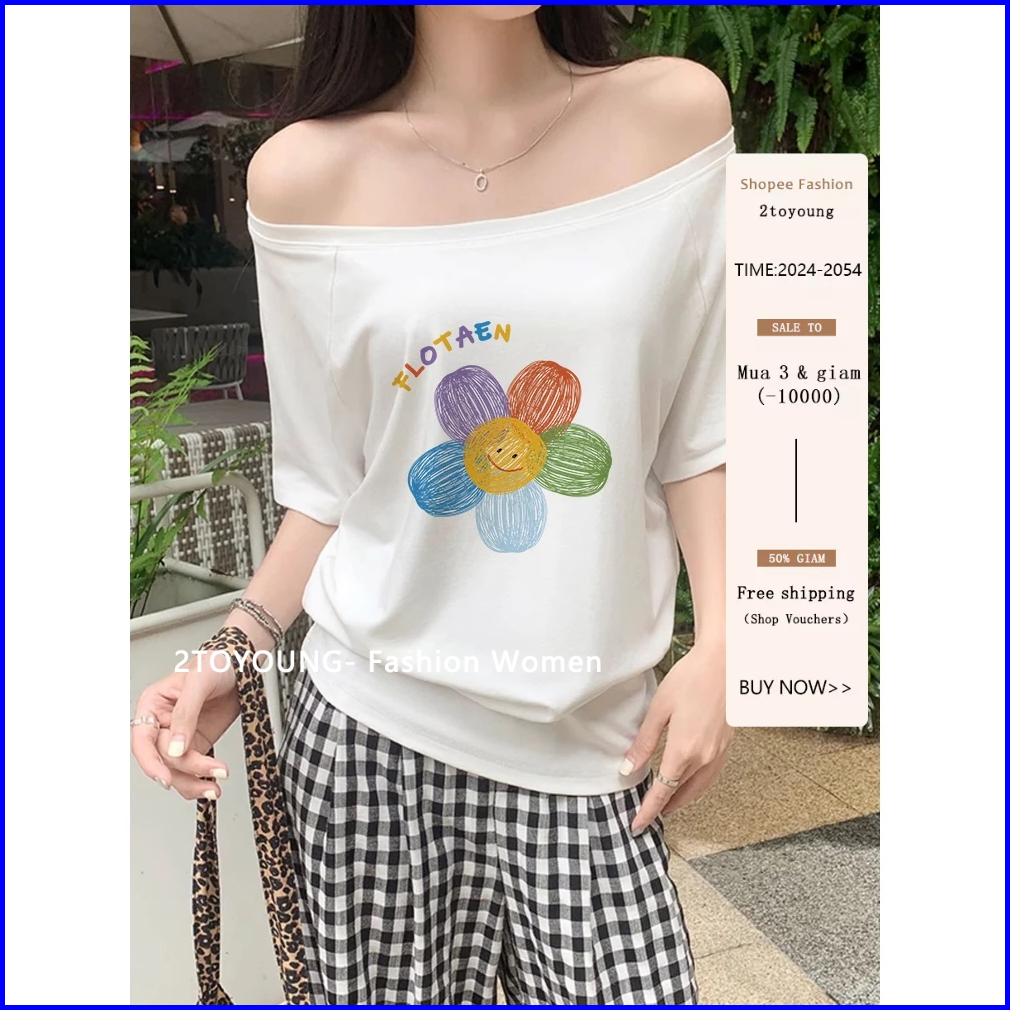 2toyoung Daisy Baju Wanita Biru Kaos Wanita Korean Style Lengan Pendek Baju Atasan Wanita Terbaru Kaos Wanita Import 100