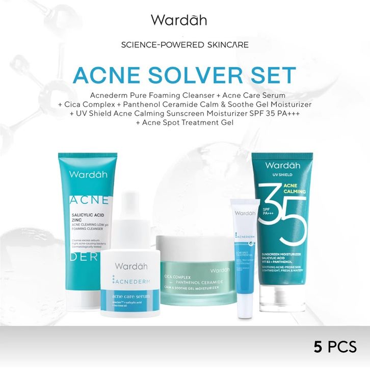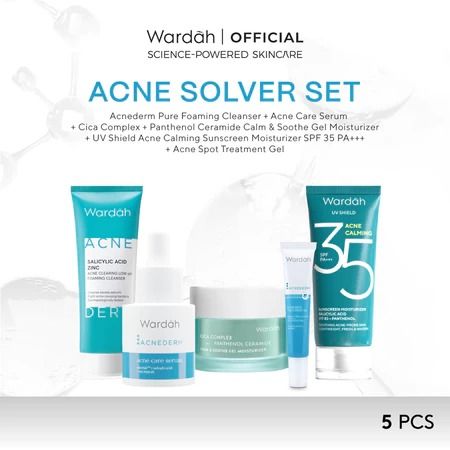 Wardah [5 pcs] Paket Skincare Solusi Masalah Kulit - Face Wash, Moisturizer, Serum, Sunscreen,