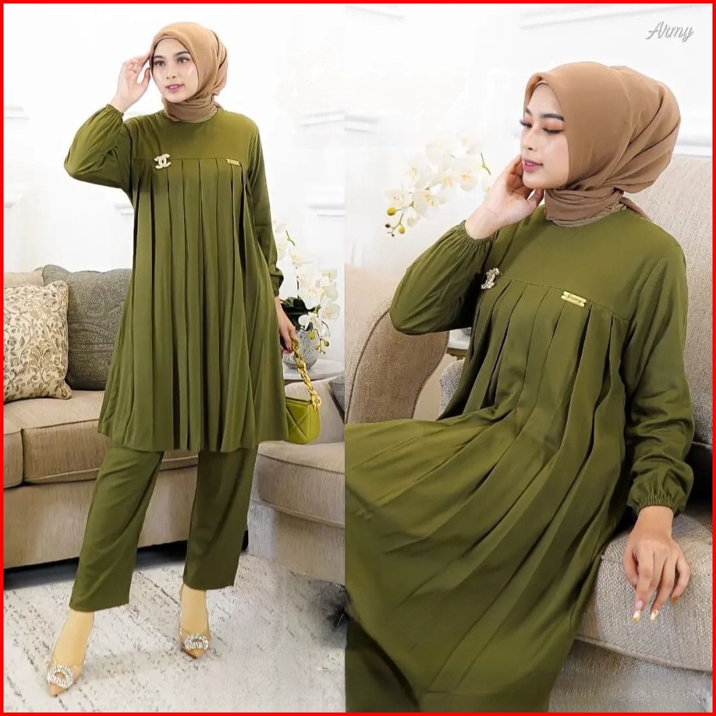 Setelan Wanita Bahan Crinkle Kekinian One Set Murah Terlaris 2025 Baju Wanita Simple Fashionable Twilla Set L-xl
