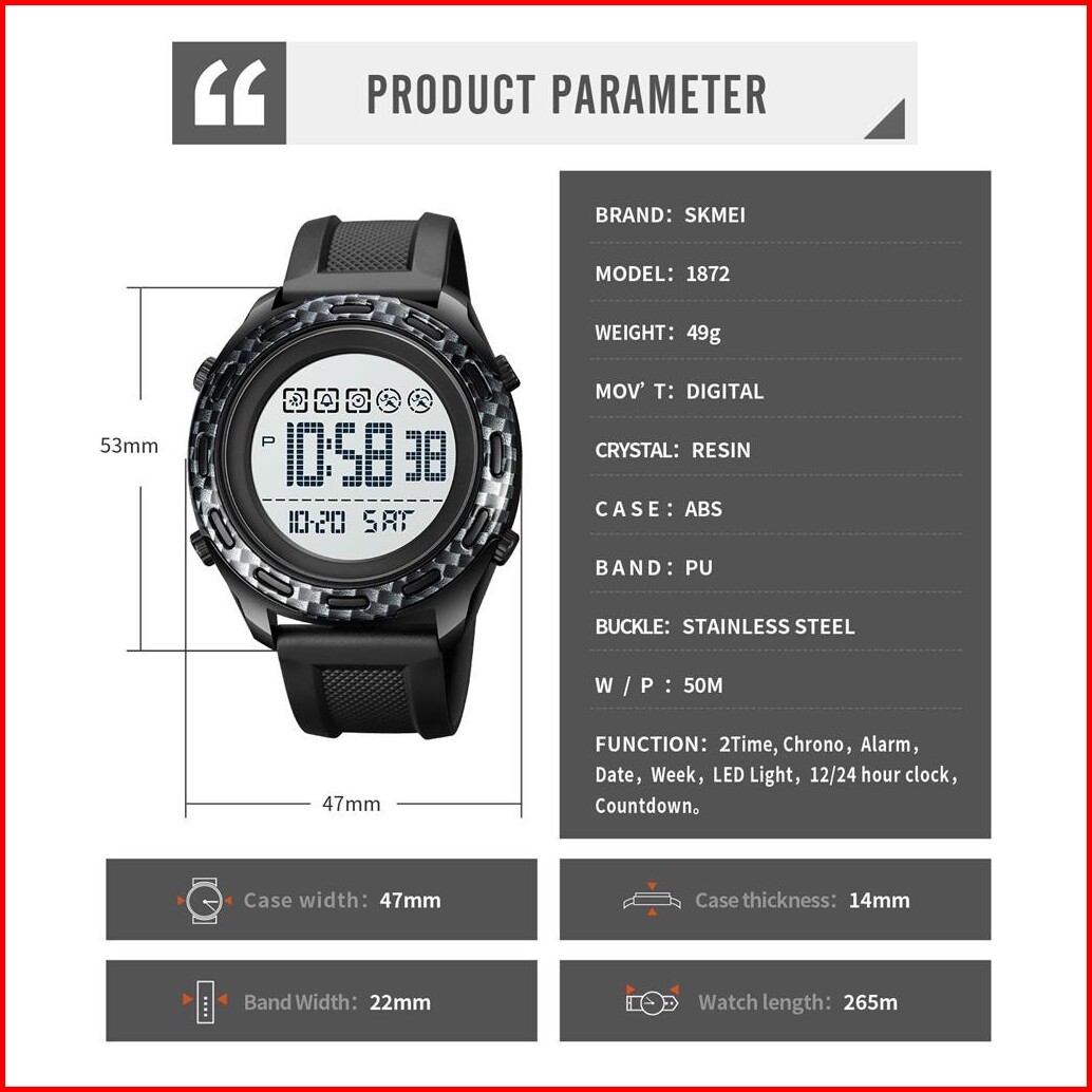 Jam Tangan Pria Digital 1872 Water Resist 5 Atm Original