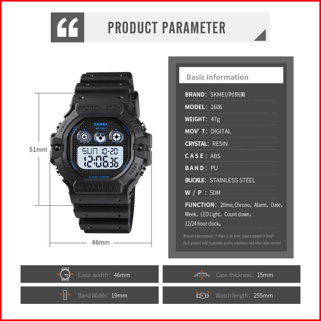 Jam Tangan Pria Skmeindonesia 1606 Digital Time Jam Tangan Original Skmei