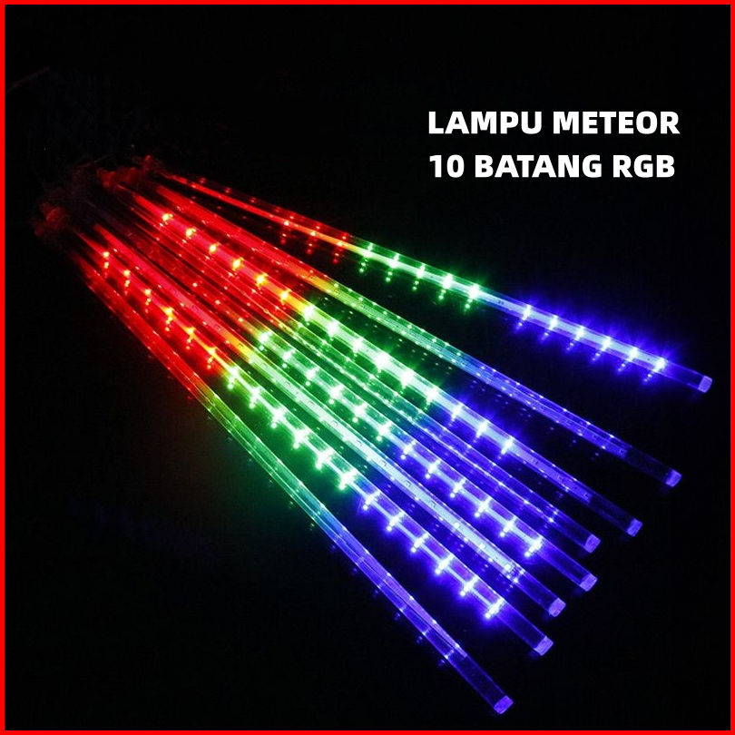 Lampu Meteor Led Hujan 50cm 10batang Merah Putih Rgb Warmwhite 1set