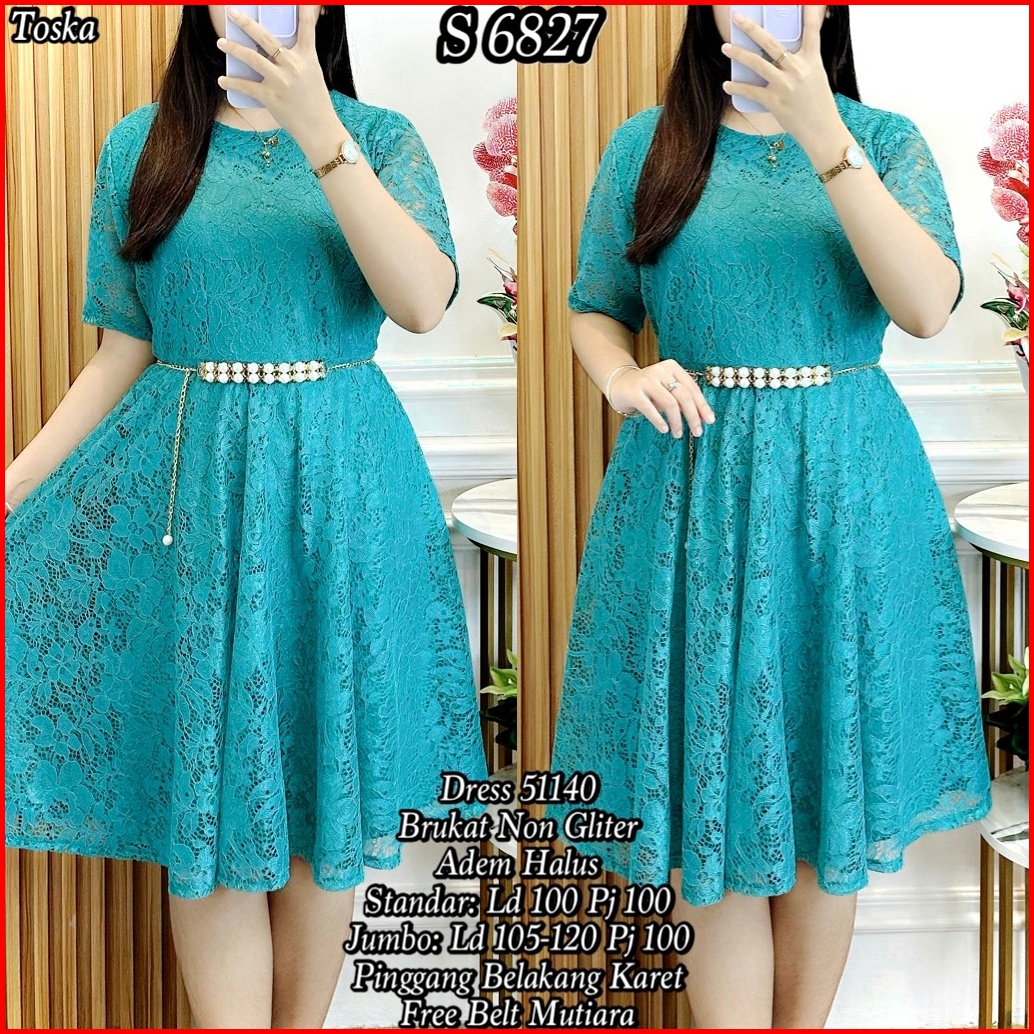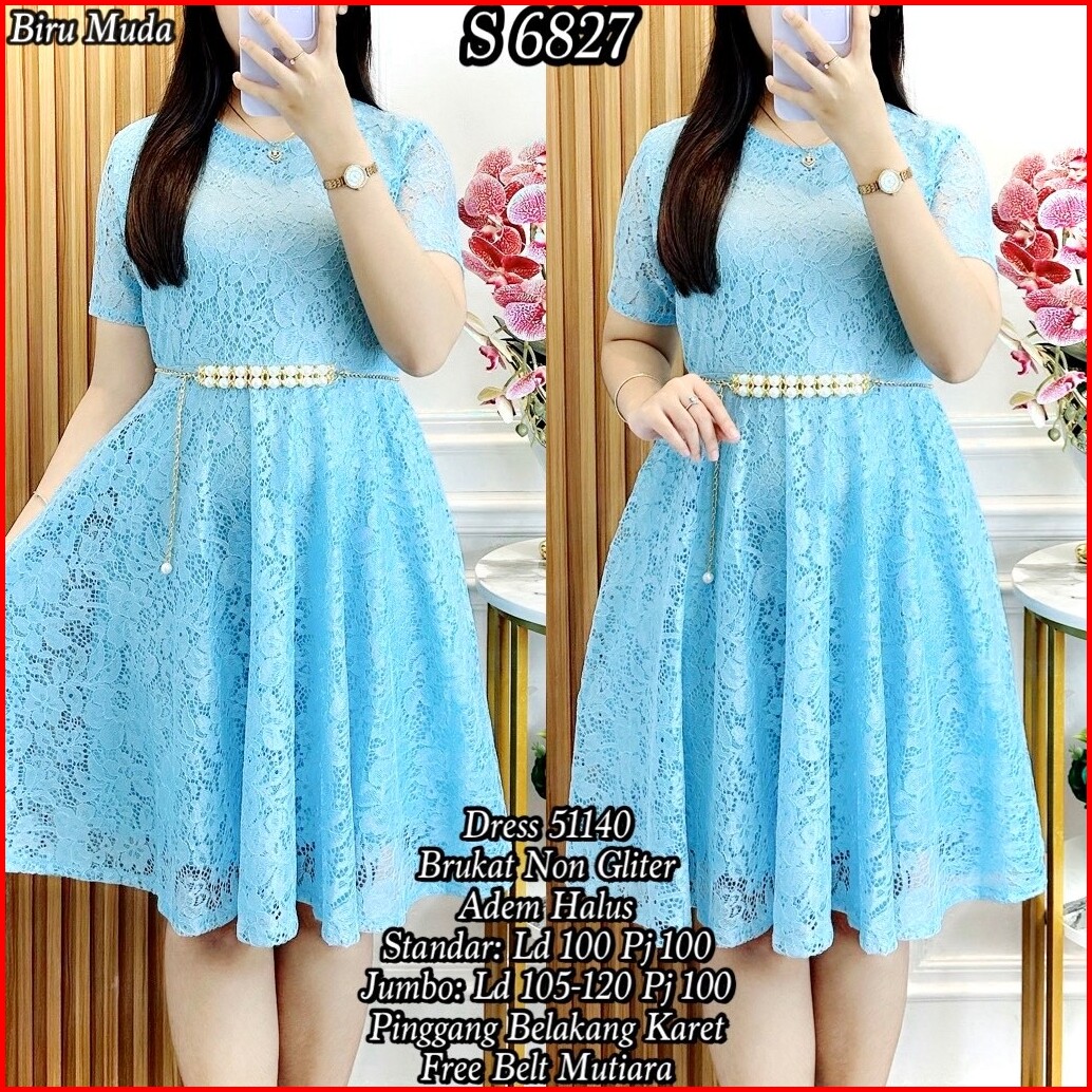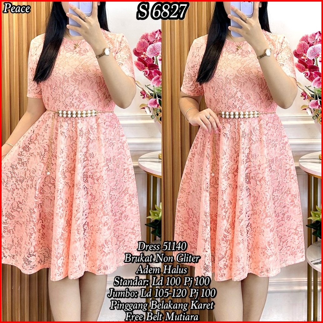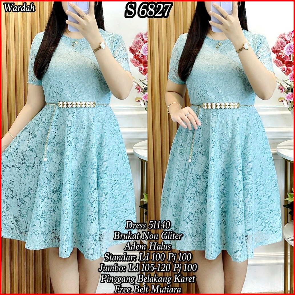S 6827 Dress Midi Brukat Polos Free Belt Standar-jumbo 51440