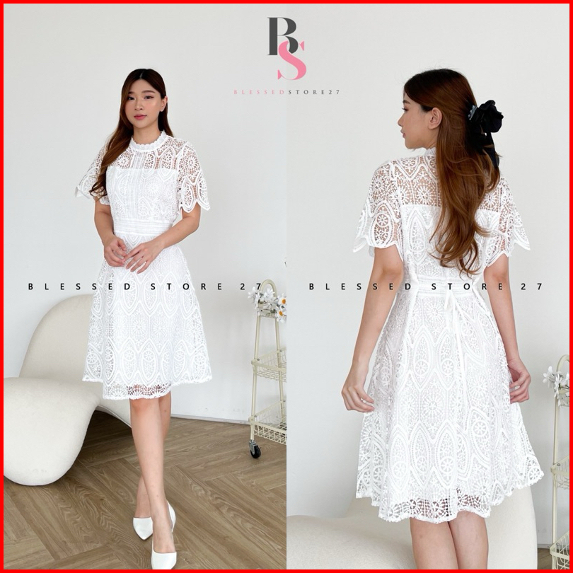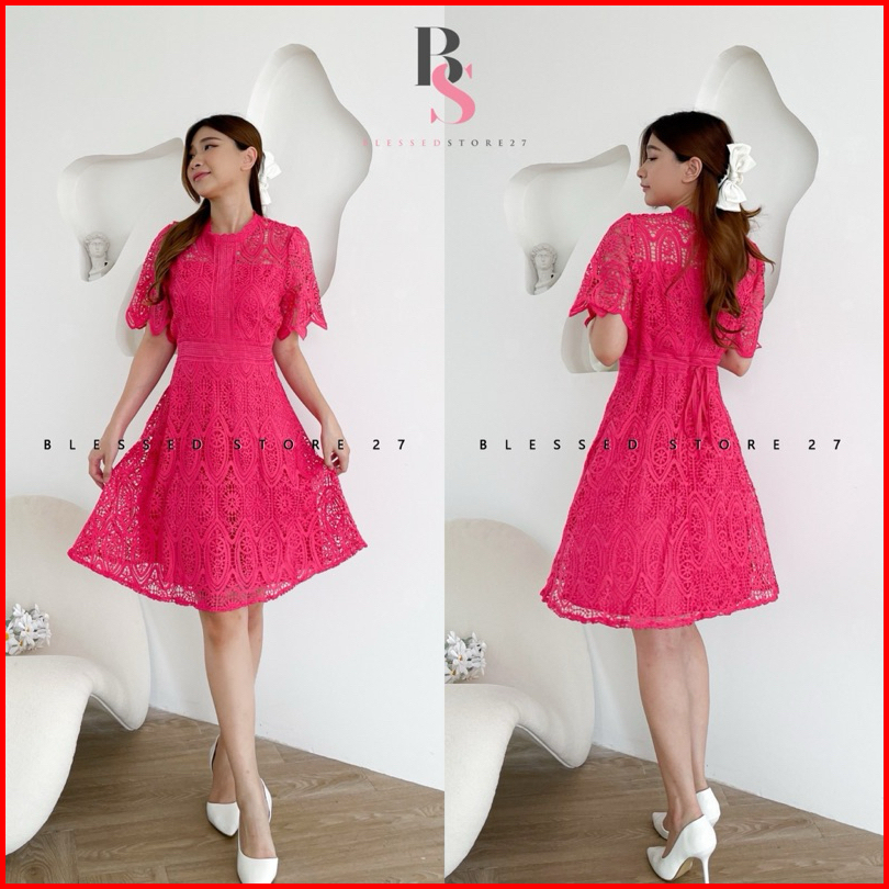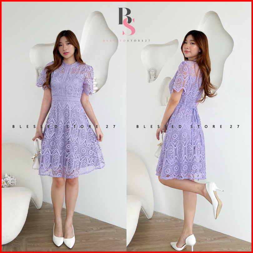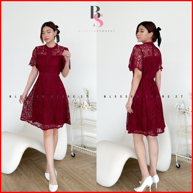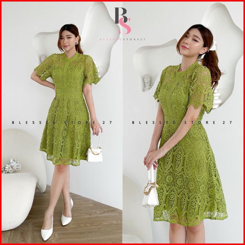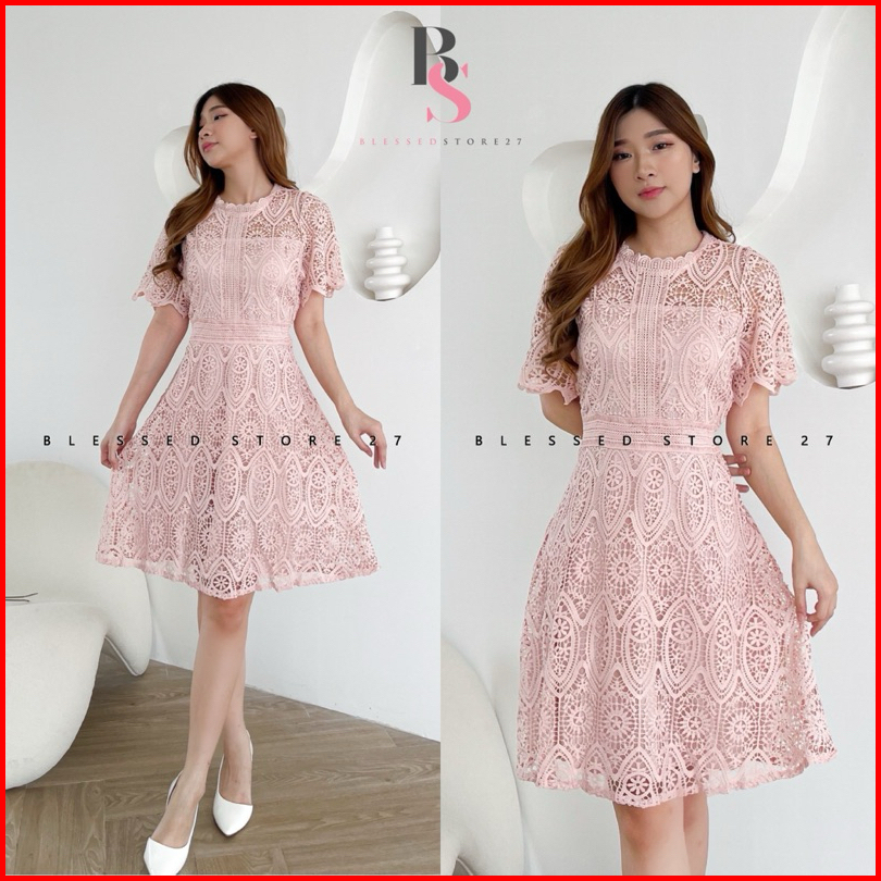 Ada Size Jumbo D1155 Nostia Korean Style Premium Brocade Crochet Vintage Midi Dress Pesta