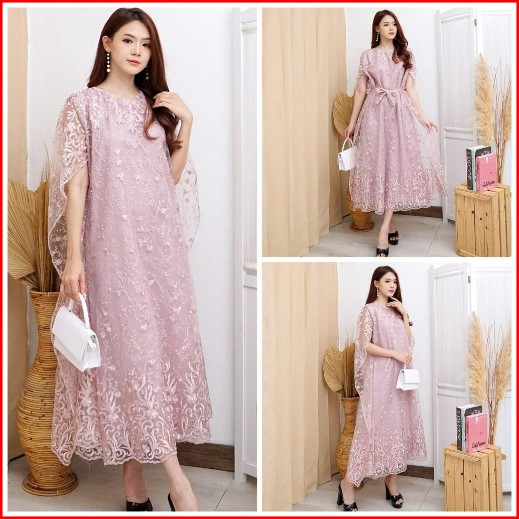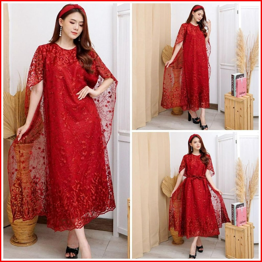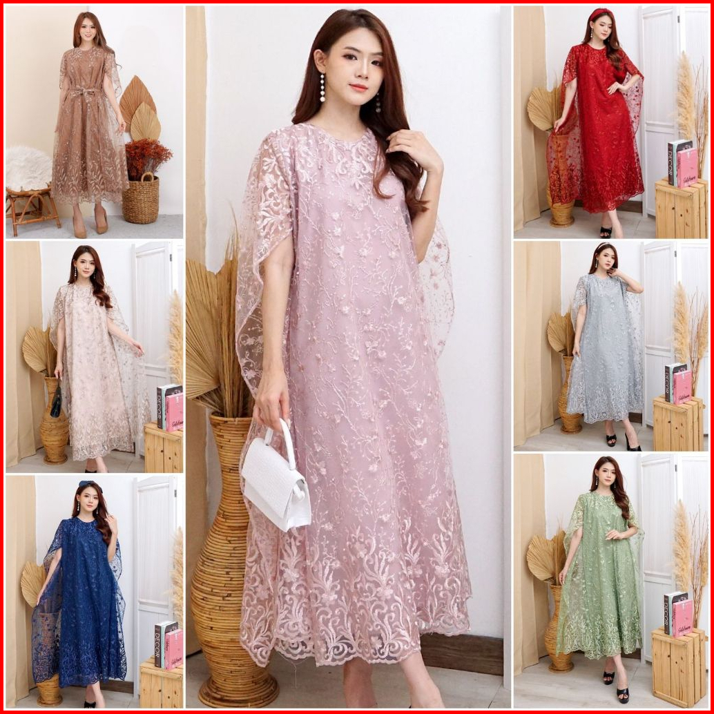 Ada Realpict Long Dress Nagita Brukat Tille Bordir Mutiara Gliter Longdress Batwing Brokat Premi