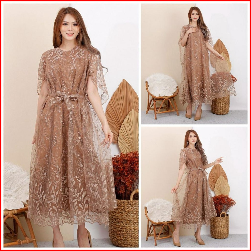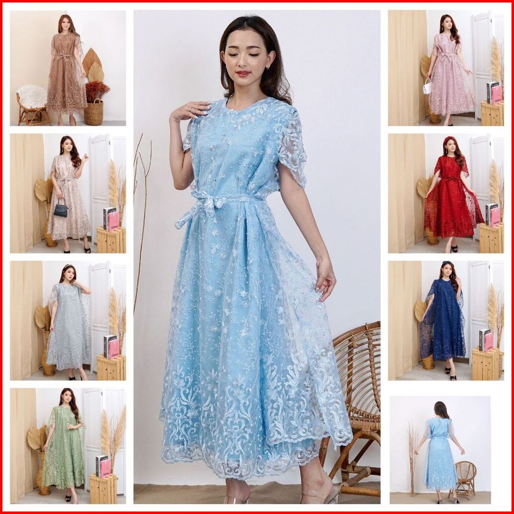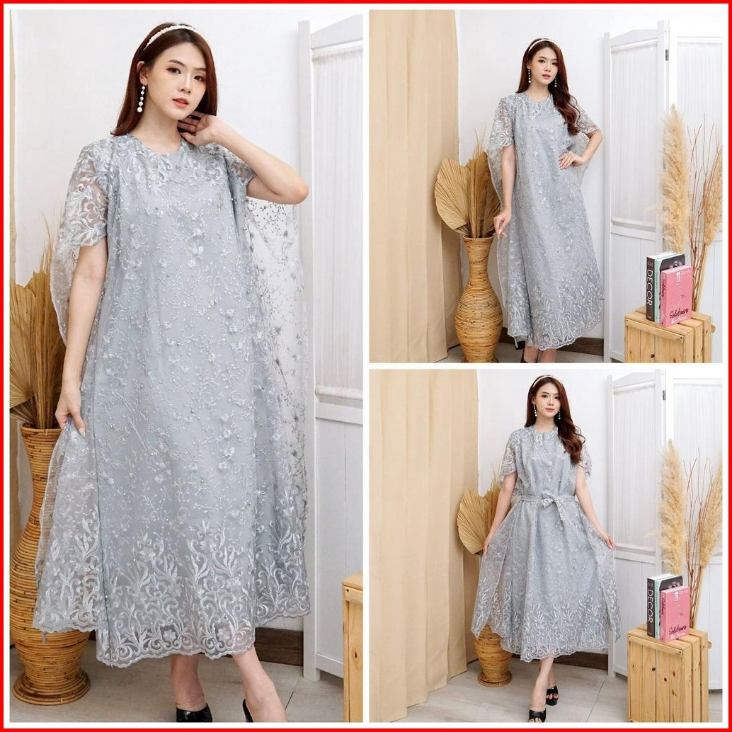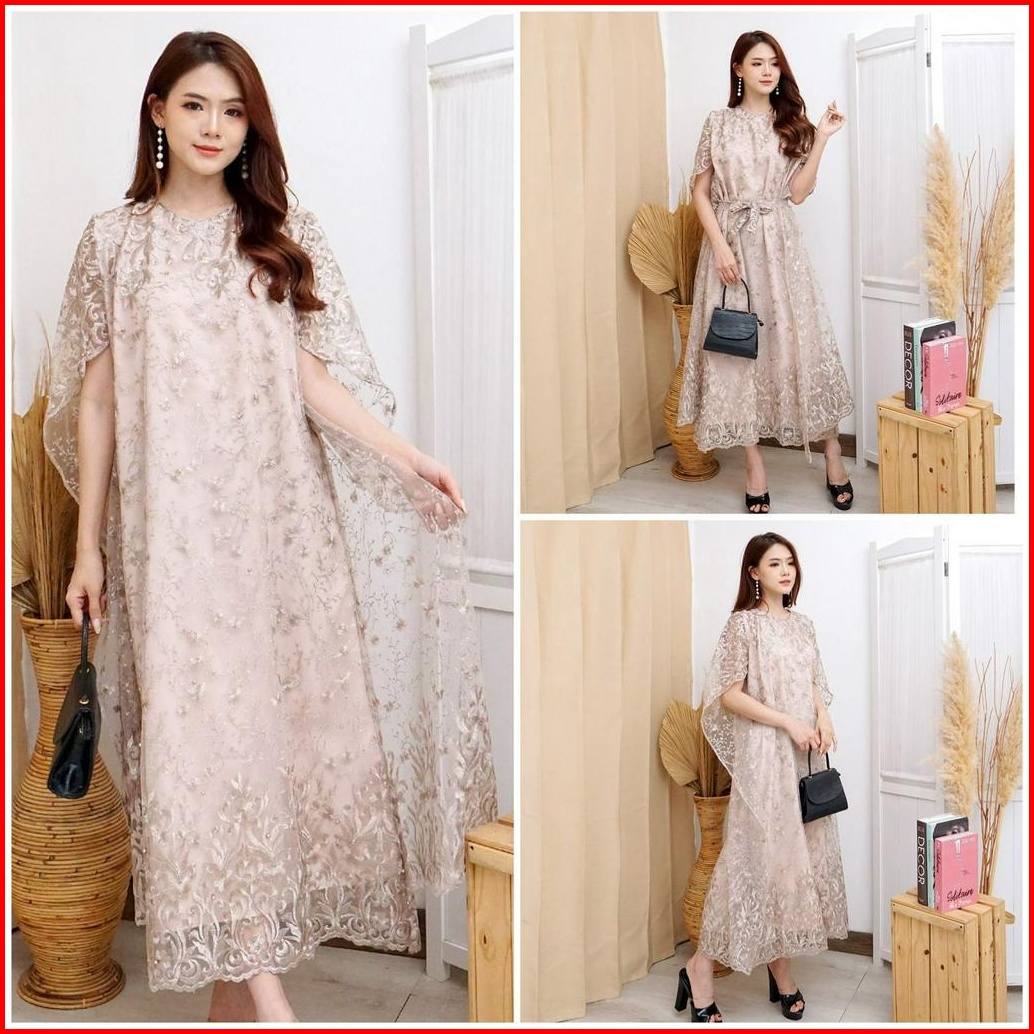 Ada Realpict Long Dress Nagita Brukat Tille Bordir Mutiara Gliter Longdress Batwing Brokat Premi