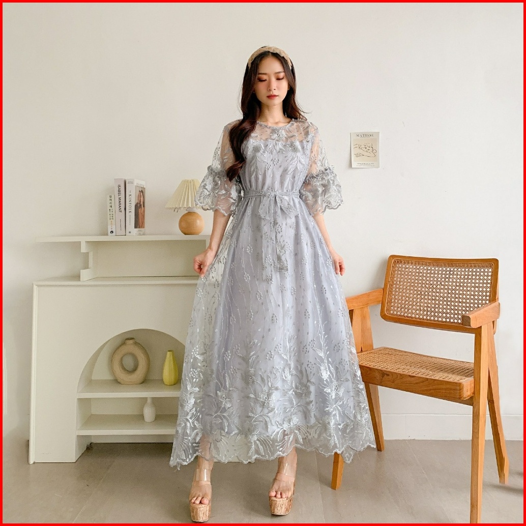 Dress Long Wanita Pesta Party Dress Kondangan Panjang Mewah Dan Elegan Terbaru Brokat Formal Gaun Tile Simple Natal Dani