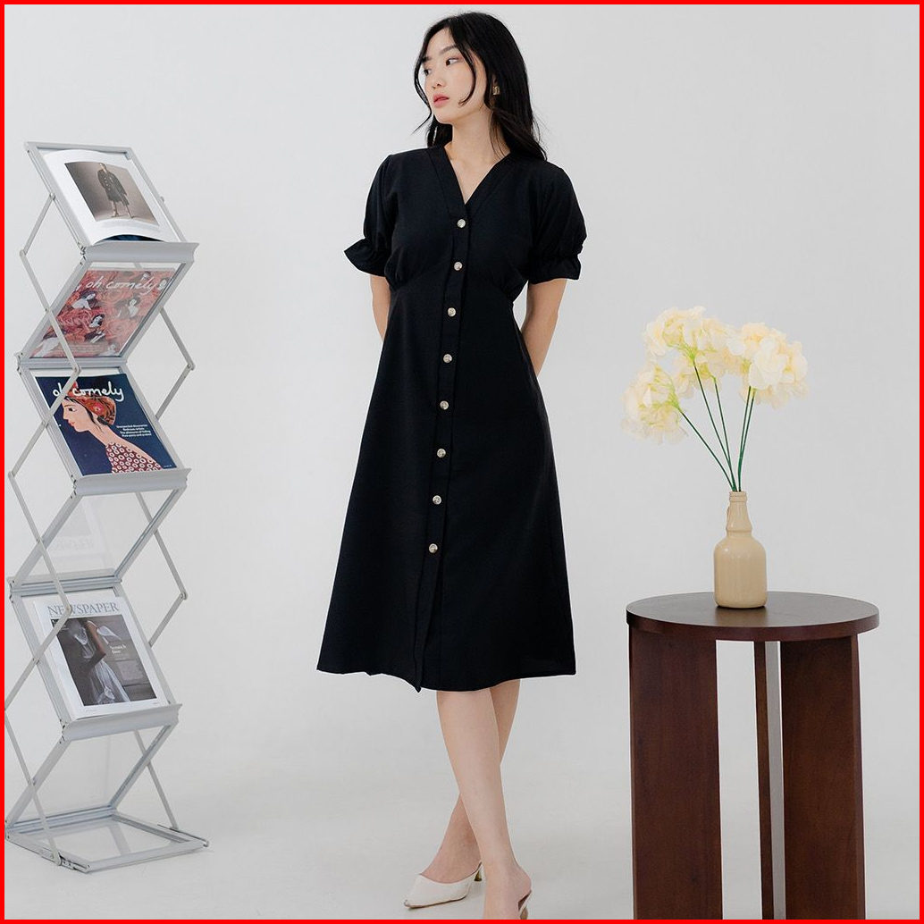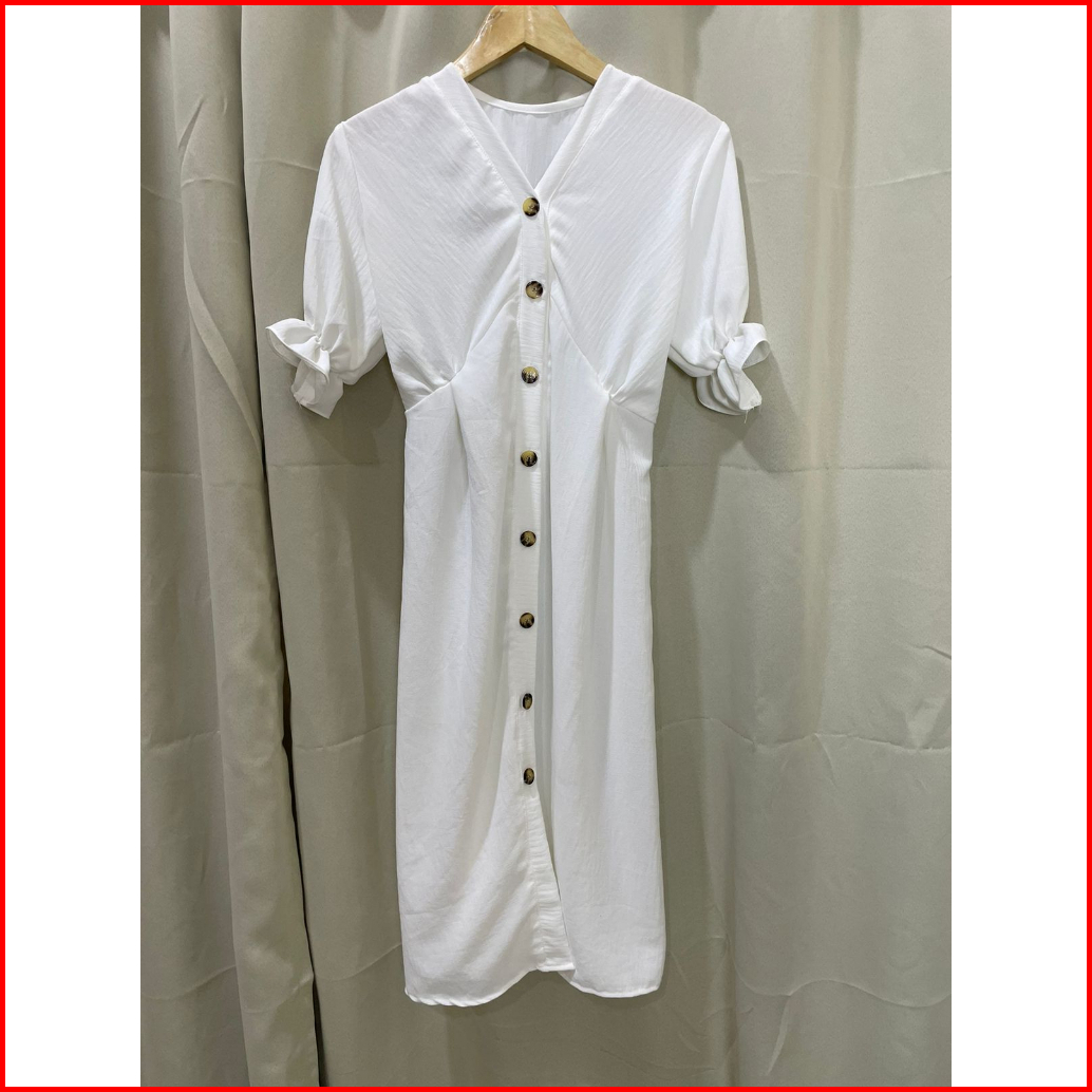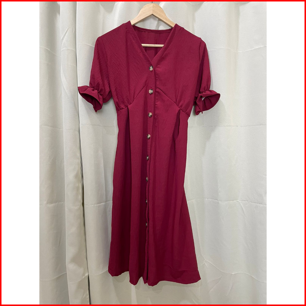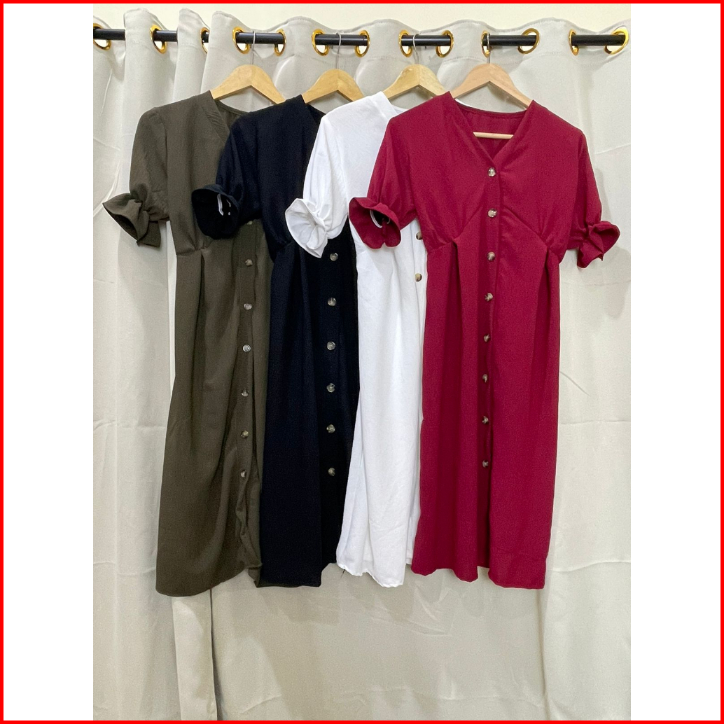 Toply Shop Dres Wilona Cey Crinkle Premium Dres Lengan Pendek Full Kancing Dres Korean Style