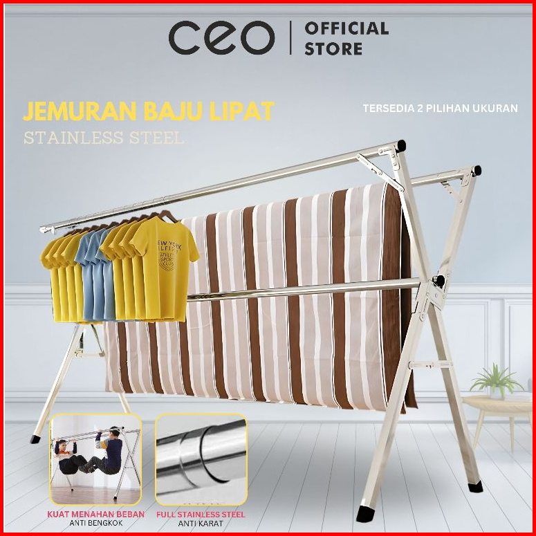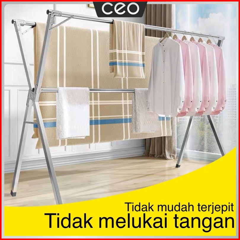 Ceo Jemuran Pakaian Baju Stainless Steel Lipat Tarik Portable Gantungan Jumbo Serbaguna Kuat Kokoh