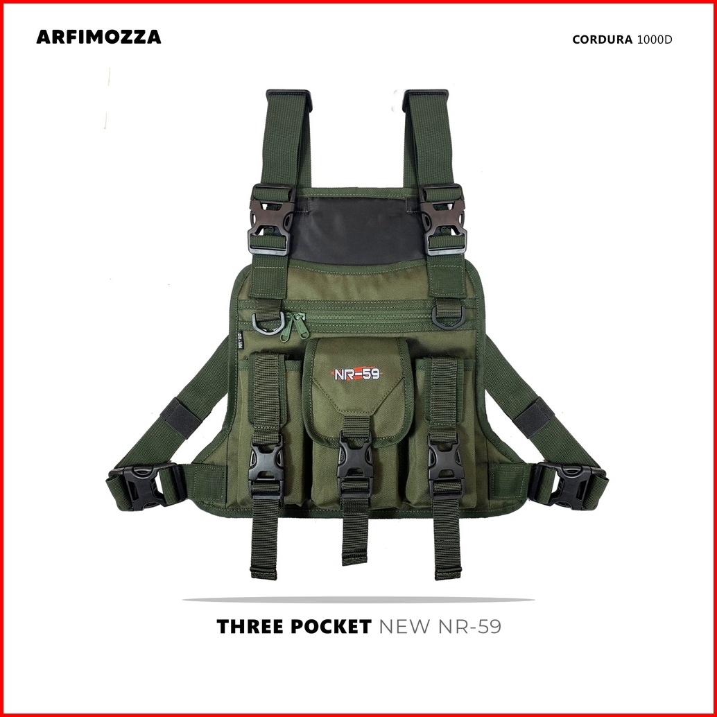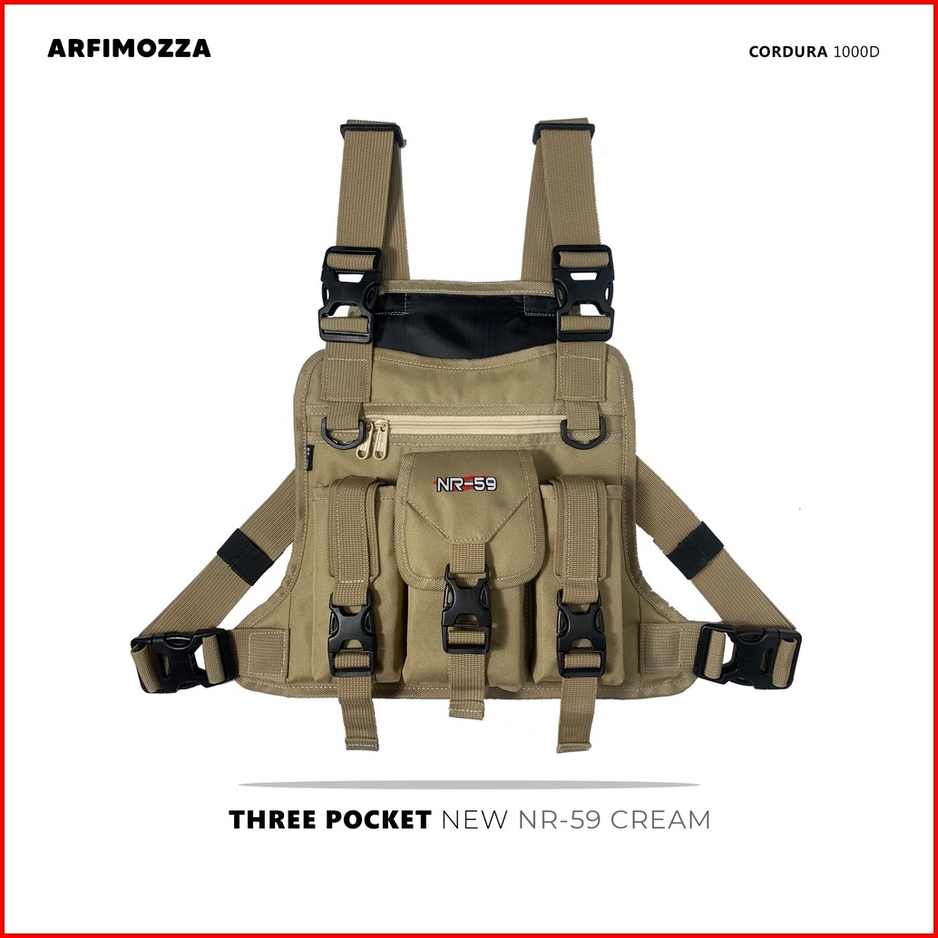 Tas Dada Pria Tactical Original Nr-59 Cream Three Pocket Ring Aracna Chest Rig Bag Nr-59 Original Chest Bag Premium Orig