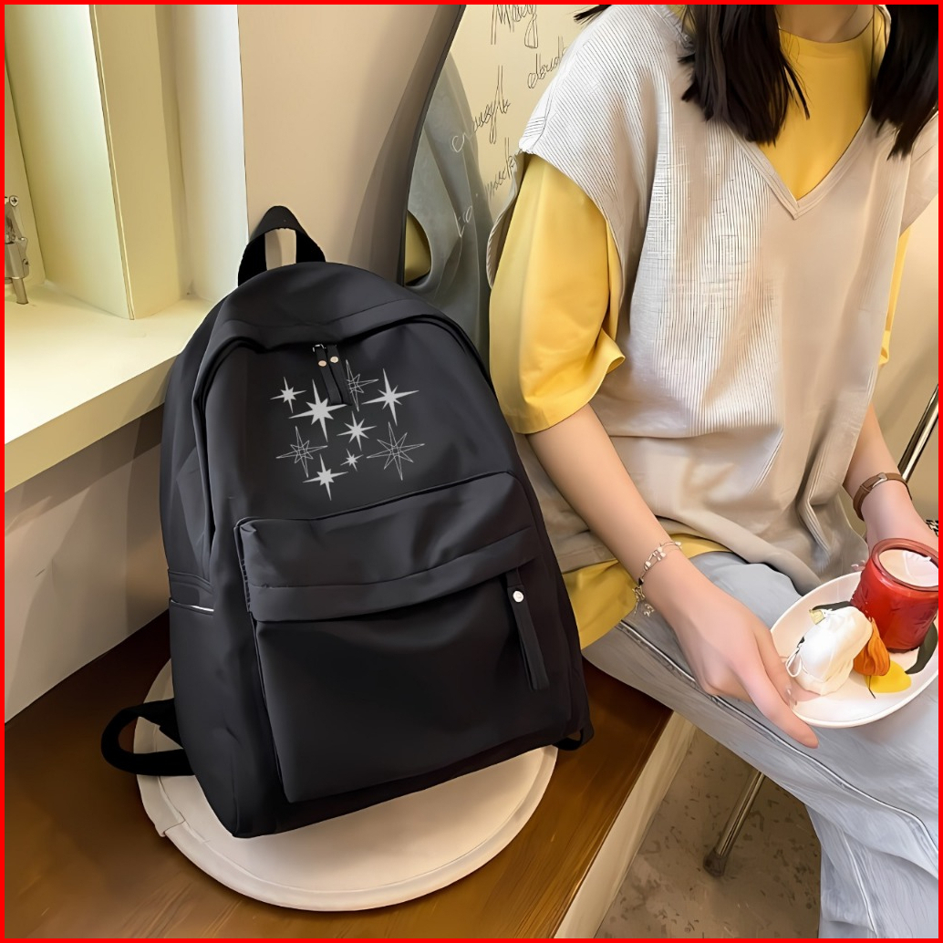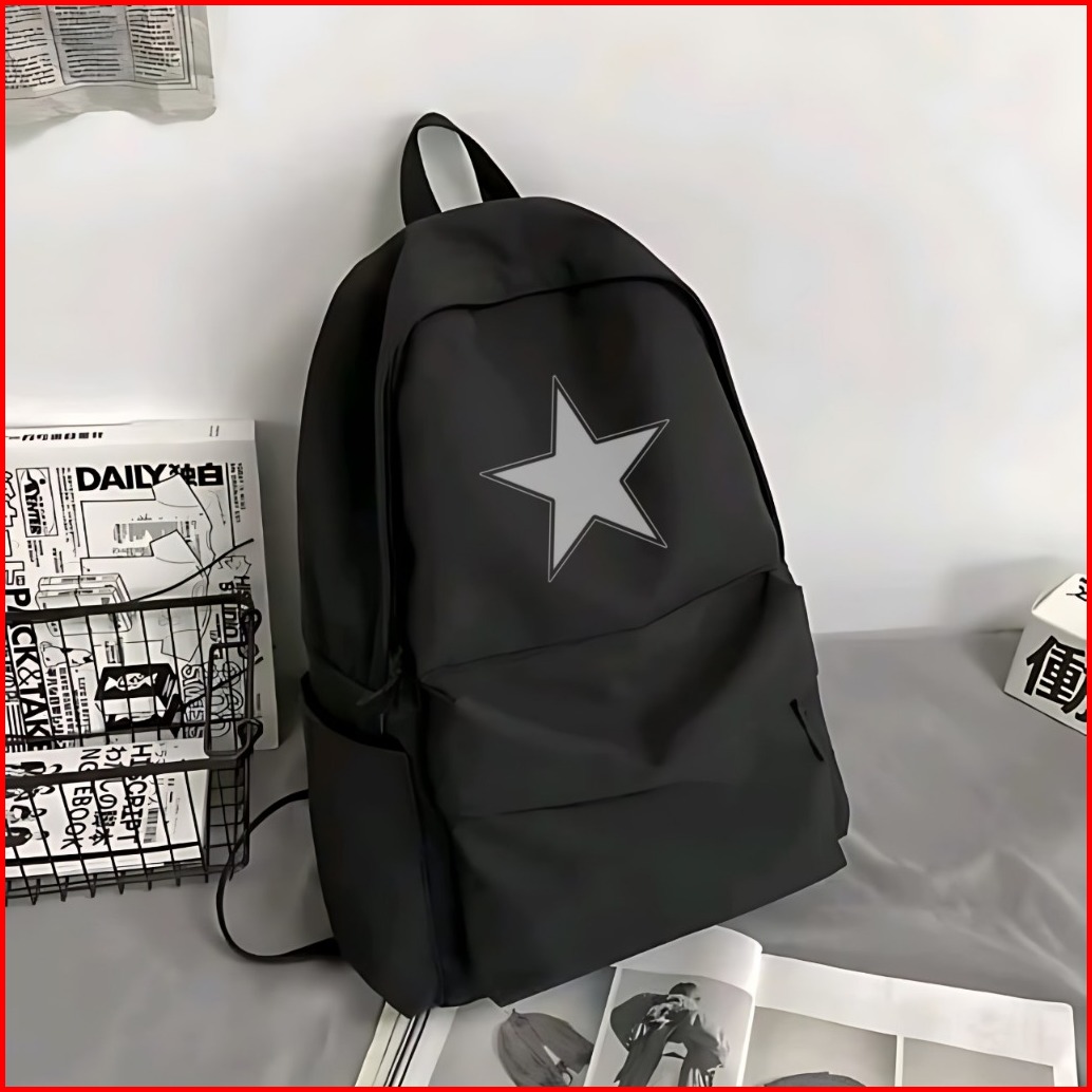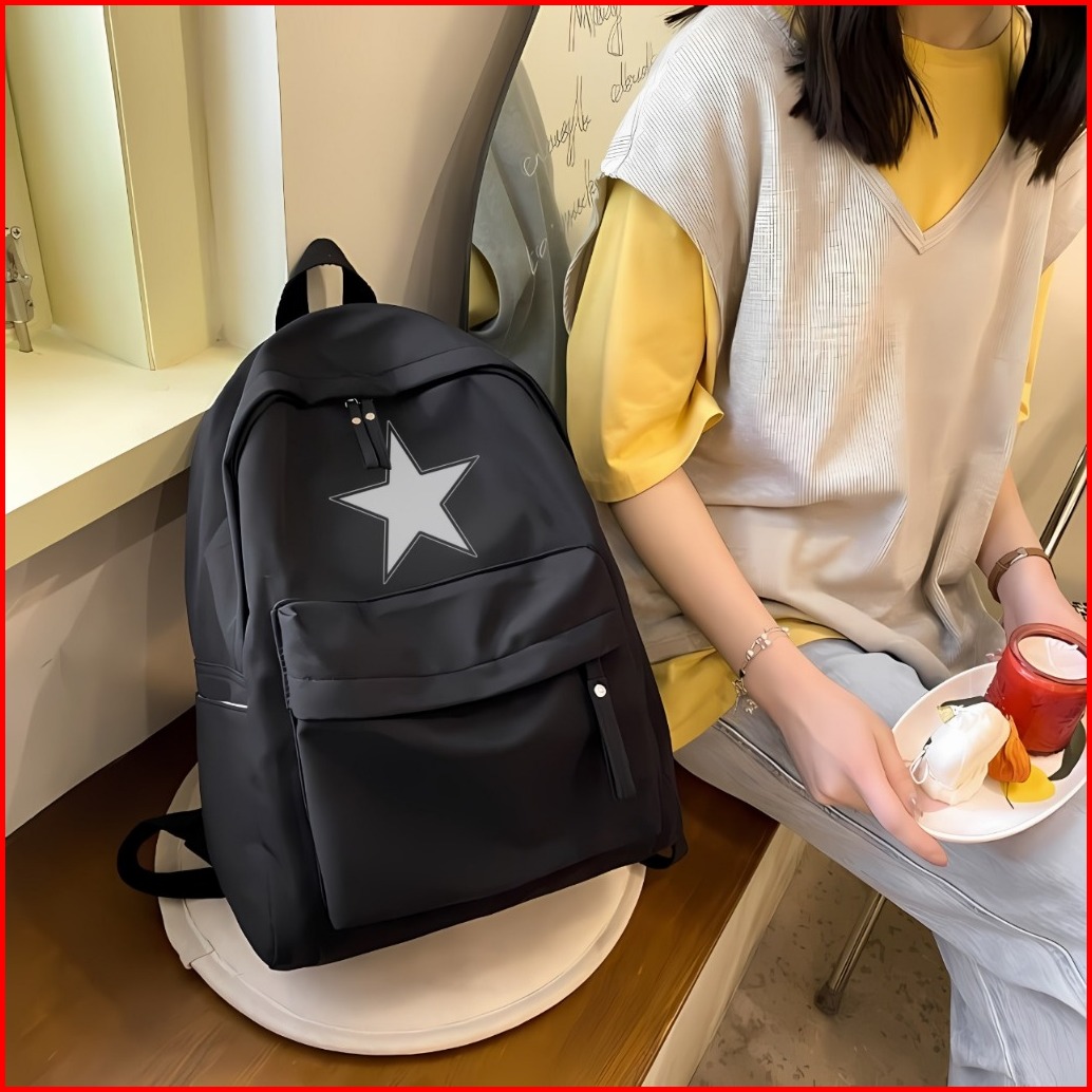 New Durable Backpack Pria Polo Felix Sekolah Sd Smp Sma Hitam Bintang Putih - Tas Anak Waterproof