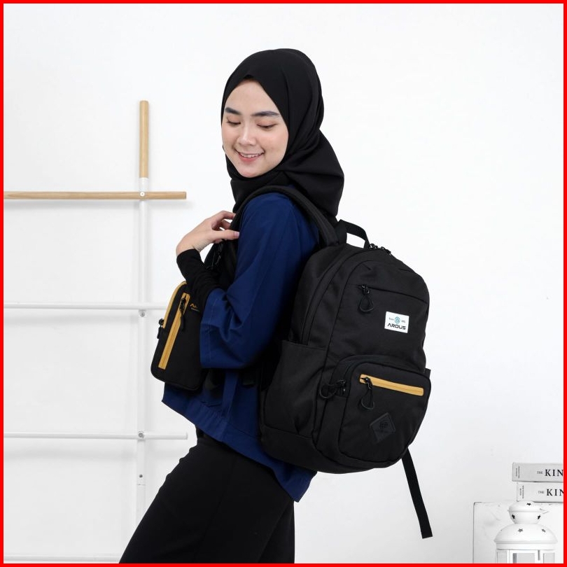 Arous - Best Seller Tas Ransel Anak Sekolah Hitam Polos Pria - Marukka Cordura Backpack Daily