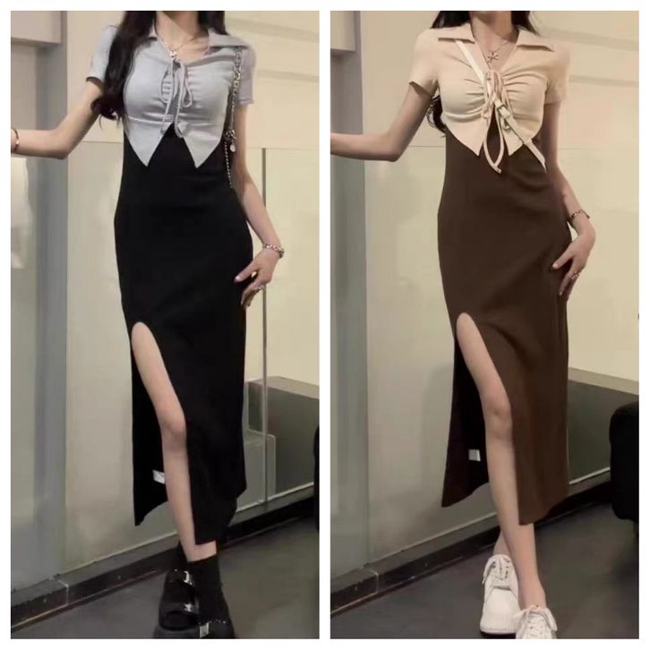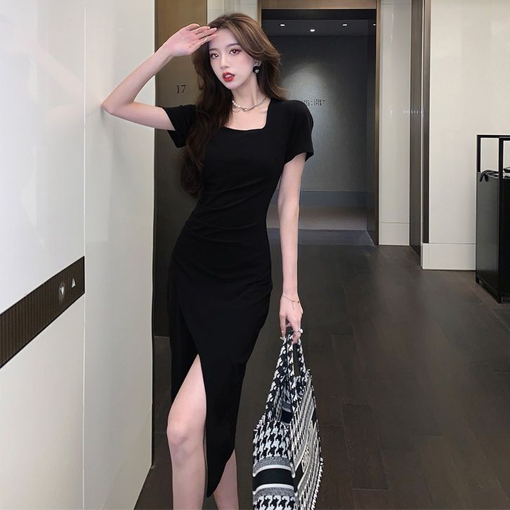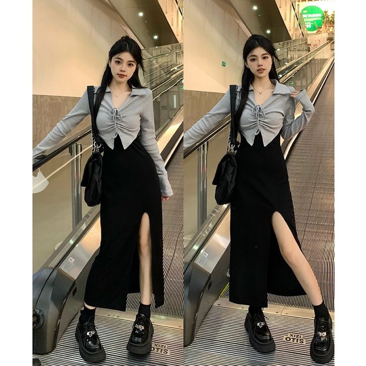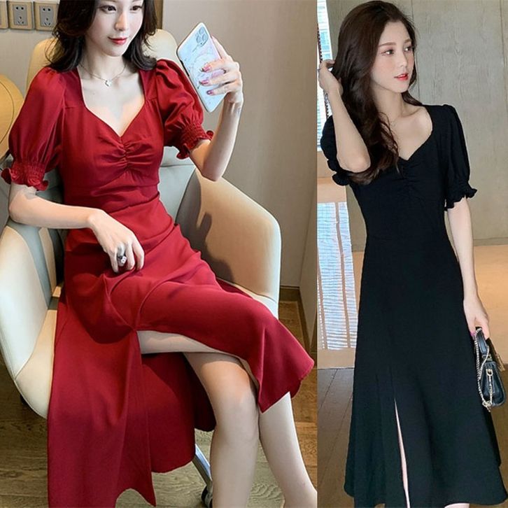 dress wanita korea style sexy party princess lengan panjang Serut hitam Wanita - cok132