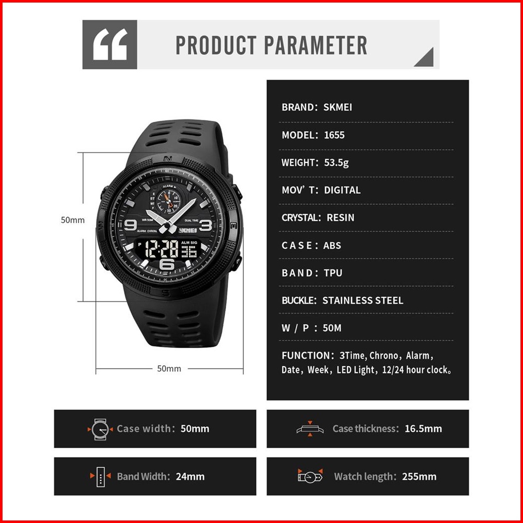 Jam Tangan Pria Skmei Analog Digital Fashion 1655 Tahan Air 50m Original