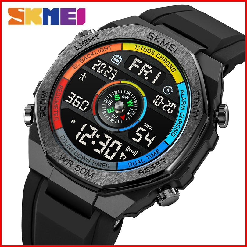 Skmei 2209 Jam Tangan Pria Digital Pedometer Compass Anti Air 5 Bar Watchkite Wkos