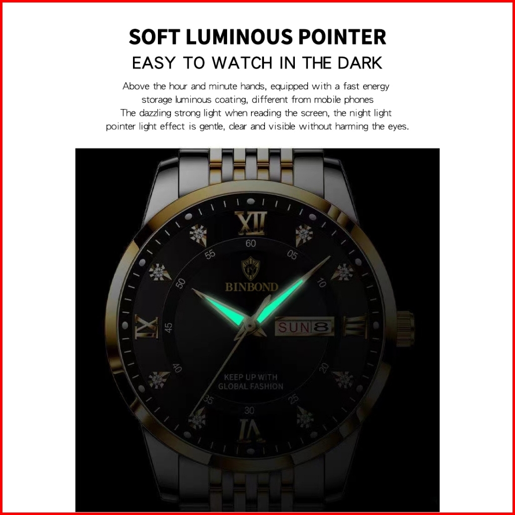 Jam Tangan Pria Jp-25 Binbond Terbaru 2025 Original Water Resistance Luxury Diamond Elegan