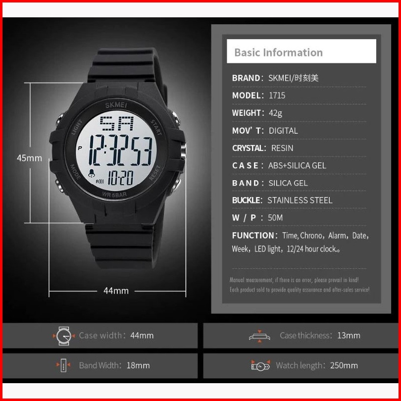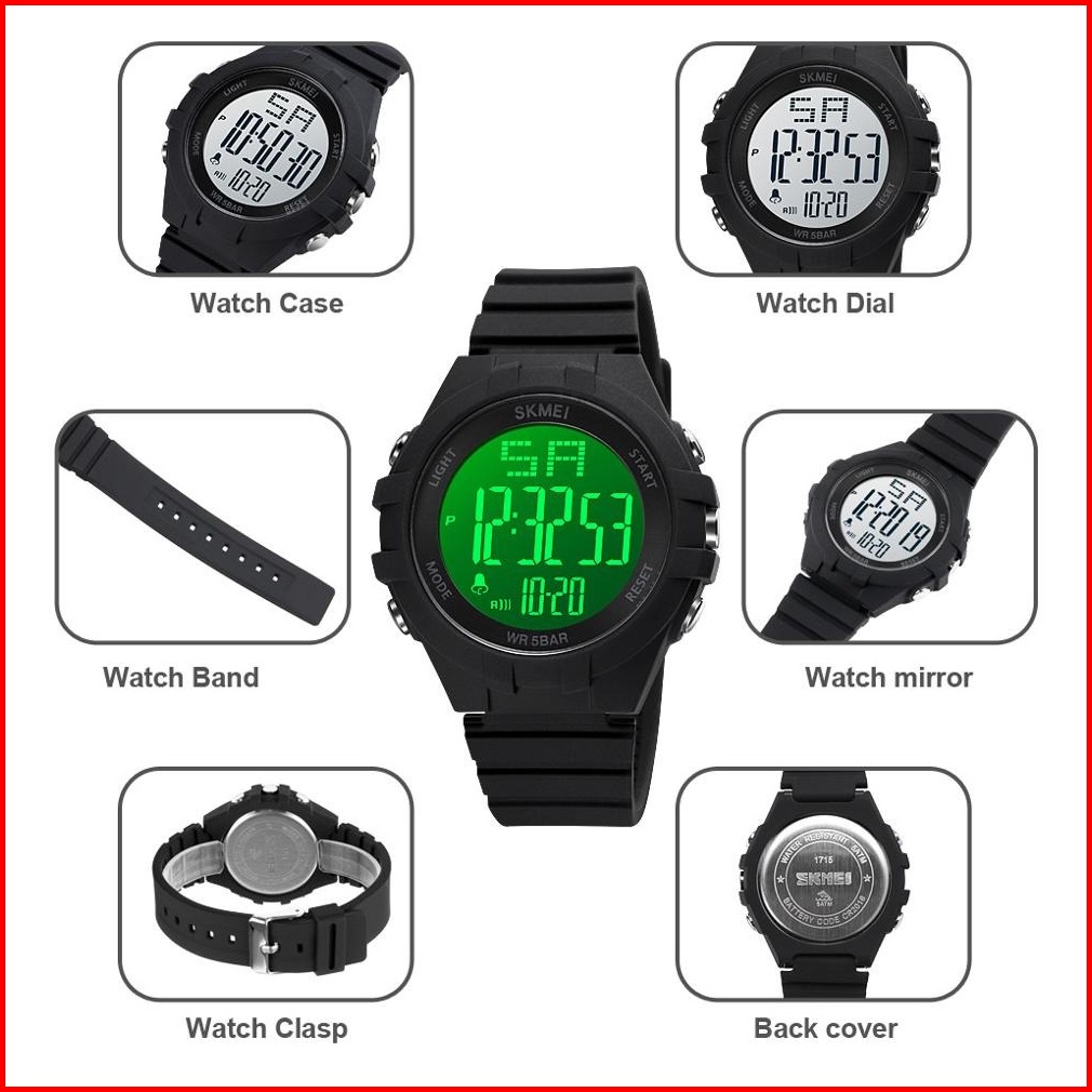 Jam Tangan Pria Skmei Digital 1715 Blackblack Water Resistant 50m