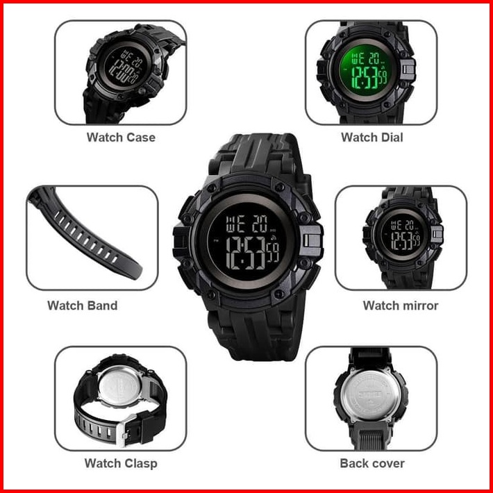 Jam Tangan Pria Digital Skmei 1545 Black White Water Resistant 50m