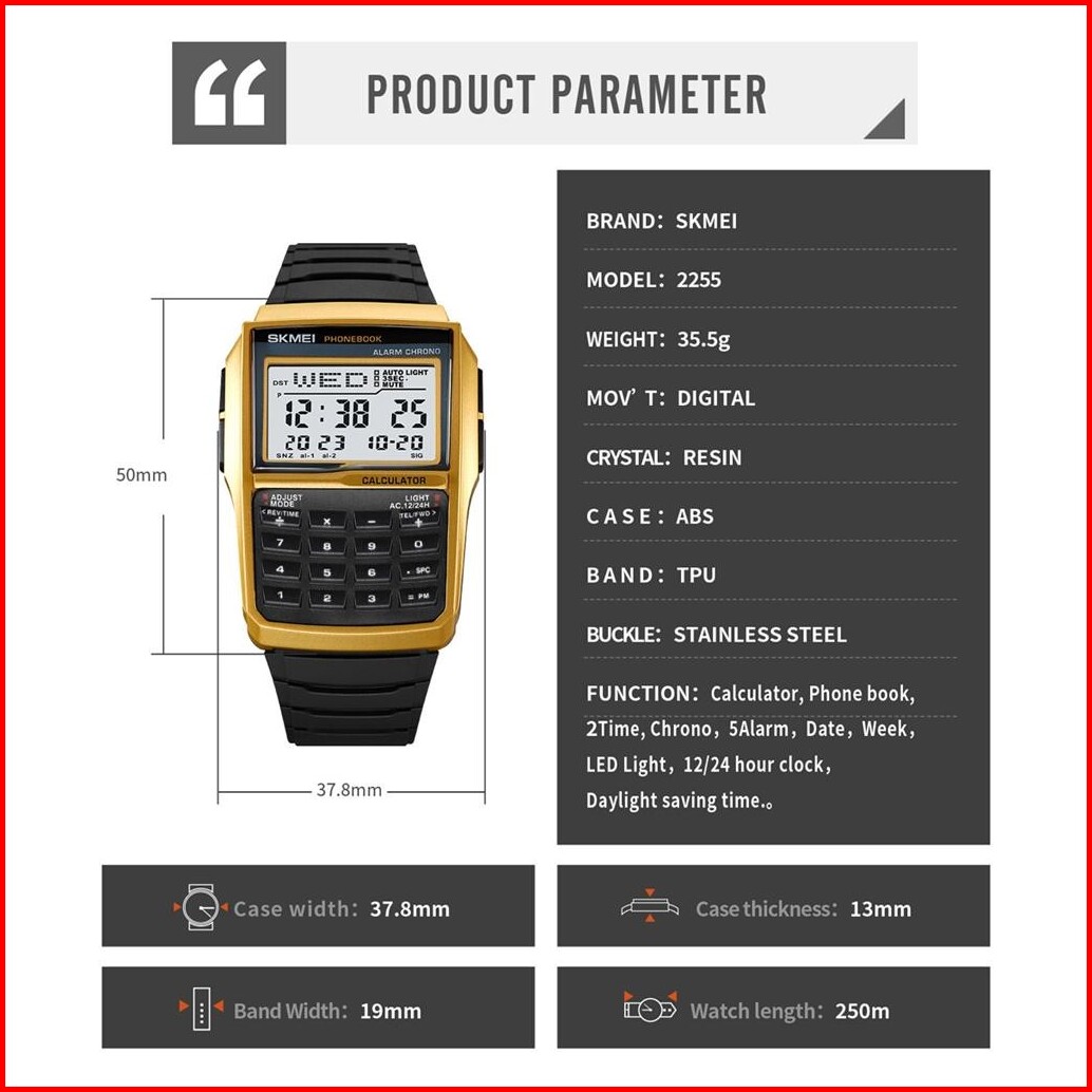 Jam Tangan Kalkulator Pria Digital Led Skmei 2255 Original Mcqueen Accessories Indonesia