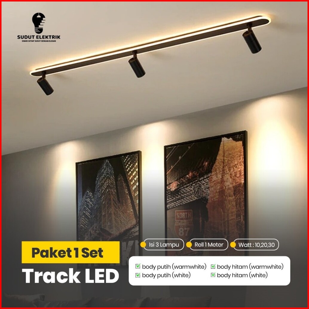 Paket 1 Set Isi 3 Lampu 10w 10 Watt Rell 1 Meter Track Led Lampu Sorot Rel Spotlight Lampu Hias Dekorasi Plafon Rumah Ca