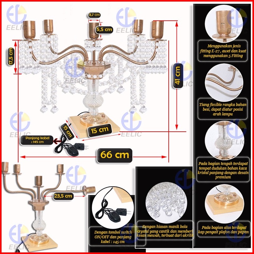 Eelic Elc-m015 Lampu Hias Meja Flexible Crystal Dengan 5 Pcs Fitting E 27