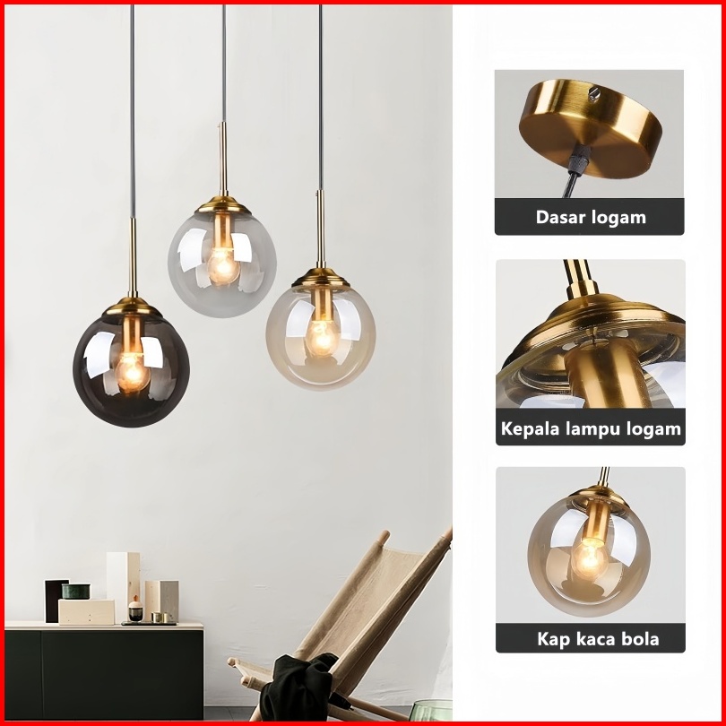 Codjiashi Lampu Hias Gantung Bola Kaca Minimalis Modern - Lampu Ruang Makan Dekoratif Lampu Gantung Ruang Tamu Lampu Kam