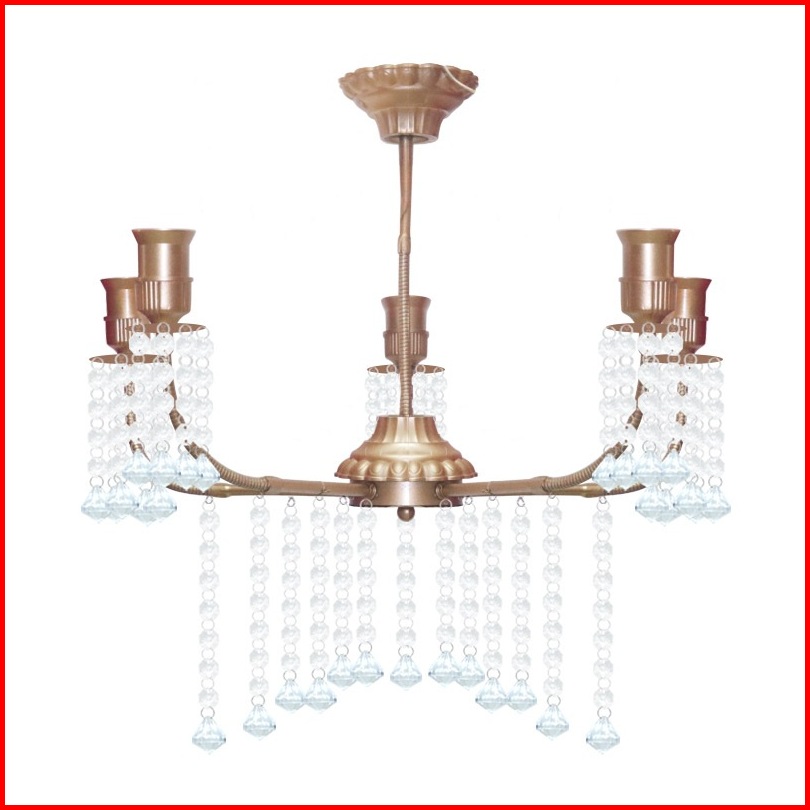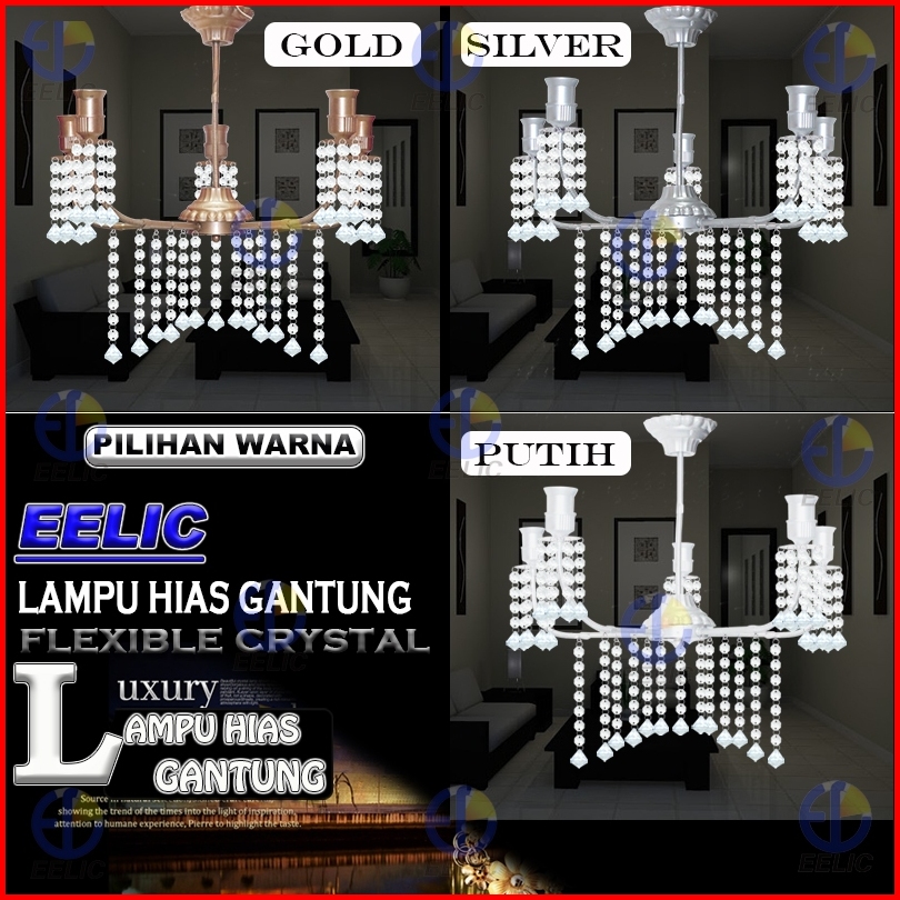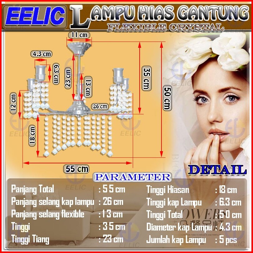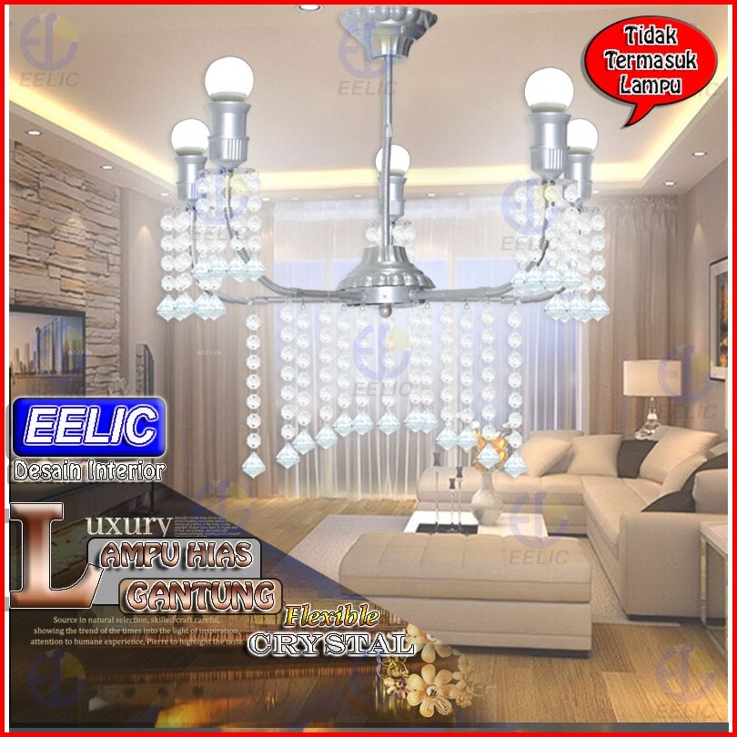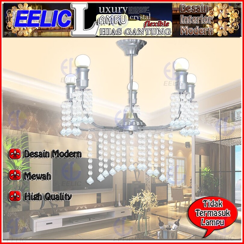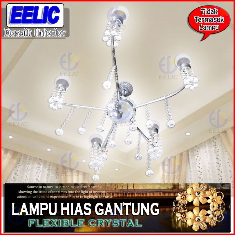 Eelic Lhg-83 Lampu Hias Gantung Crystal Lima Kap Selang Flexible Dengan Hiasan Manik Crystal