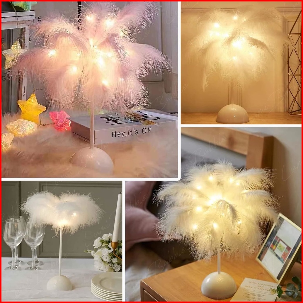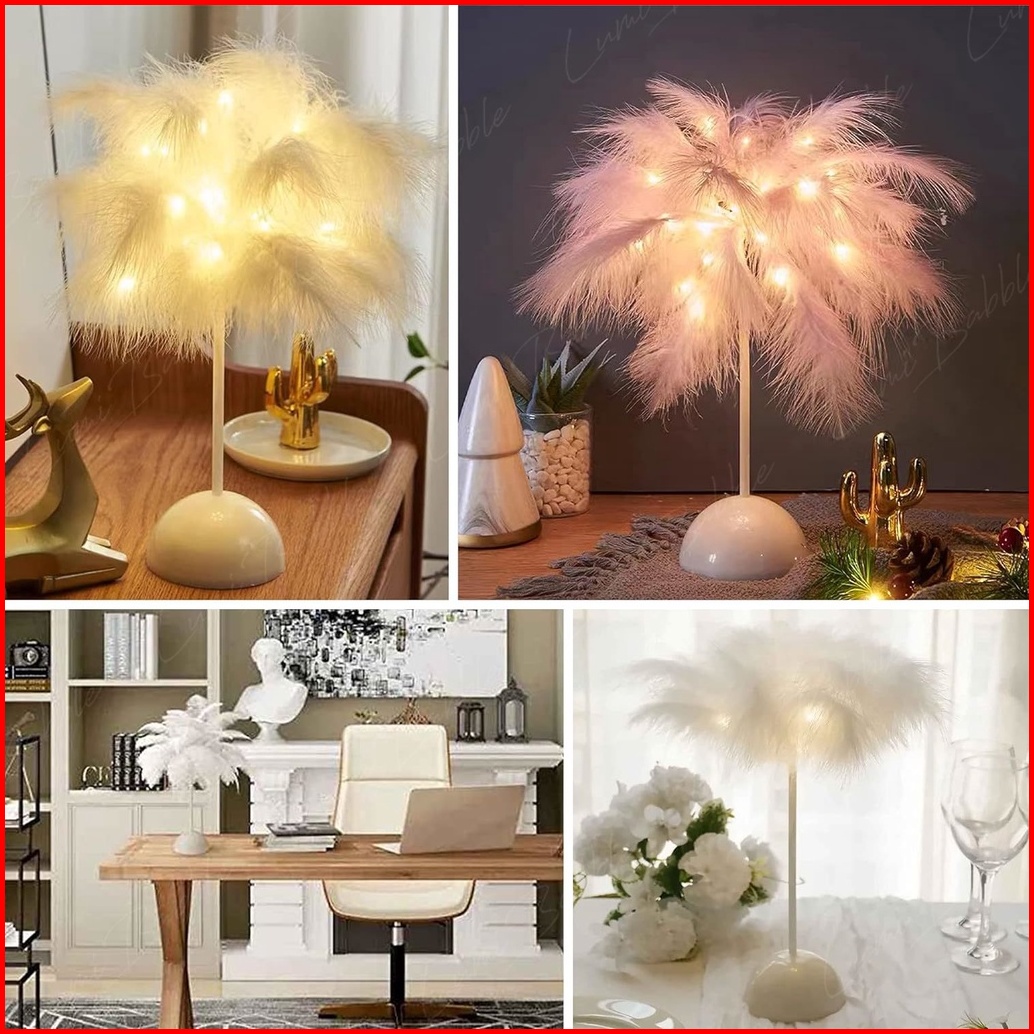Lampu Meja Aesthetic Led Lampu Hias Kamar Tidur Lampu Hias Ulang Tahun Romantis Lampu Bulu Angsa Lampu Meja Makan Lampu