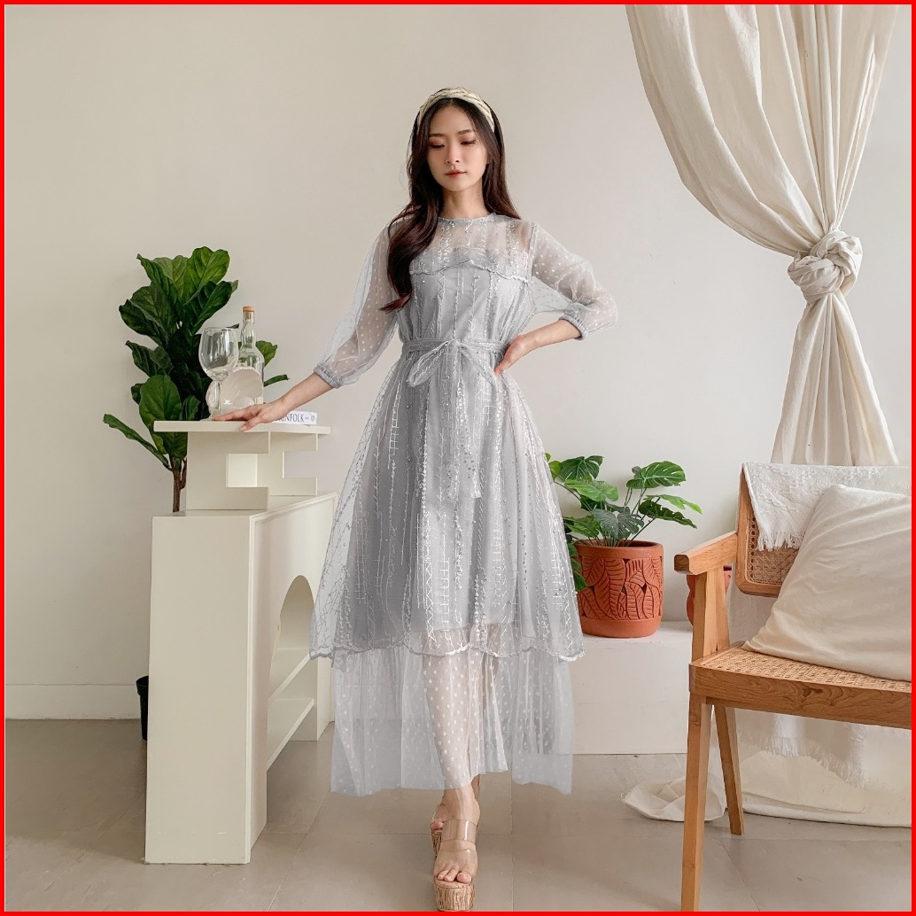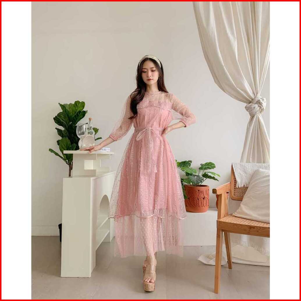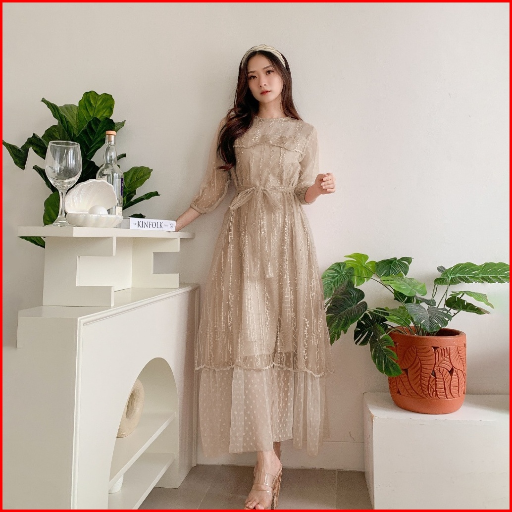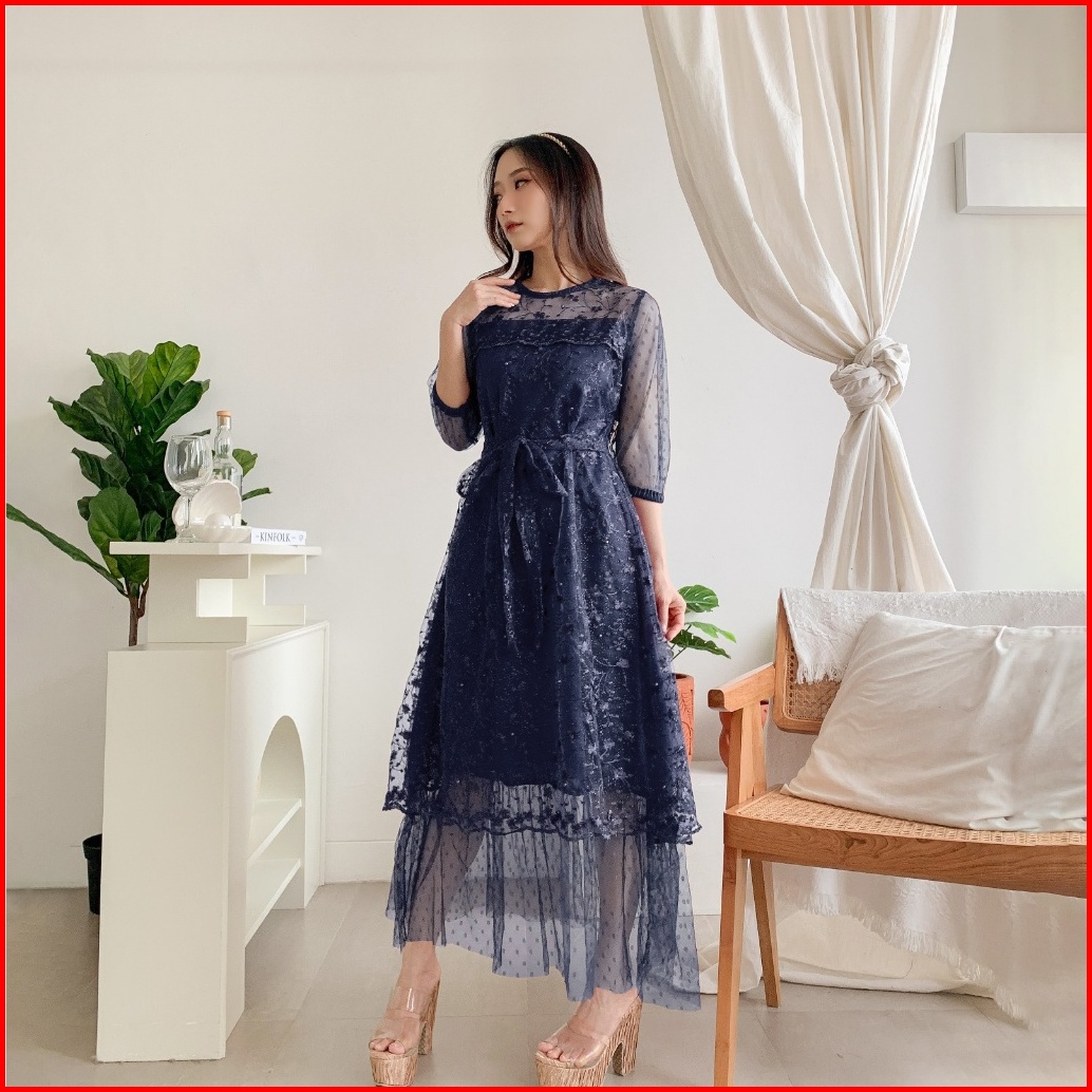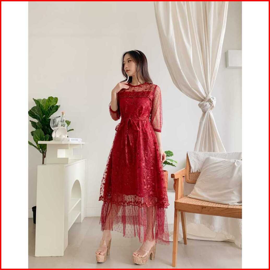 Marcella Dress Wanita Remaja Velvet Brokat Natal Korean Style Gaun Pesta Kondangan Formal Anggun