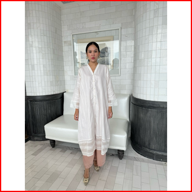Nabo - Raindrops Dress Outer Kain Renda Berbeda Beda Tiap Dress Varian Full White Sekarang Full Putih Tanpa List Kuning