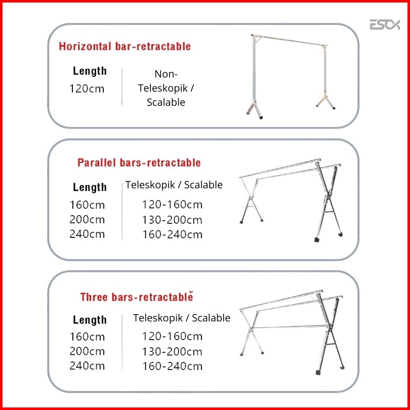 Special Esok Jemuran Baju Lipat Jemuran Pakaian Tahan Karat 160cm 200cm 240cm - Jemuran Pakaian Outdoor Indoor