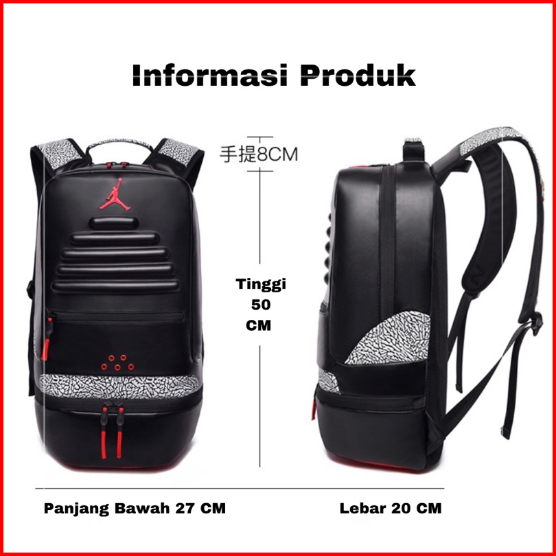 Ransel Jordan Kulit Retro 3 Backpack Bagpack Leather Jordan Retro 3 Tas Sekolah Tas Kantor Tas Kulit Jordan Tas Olahraga