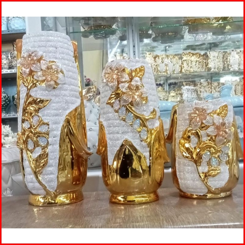 Vas Jagung Keramik Hias Set 3 Pcs Vas Keramik Import Pajangan Lemari Hias