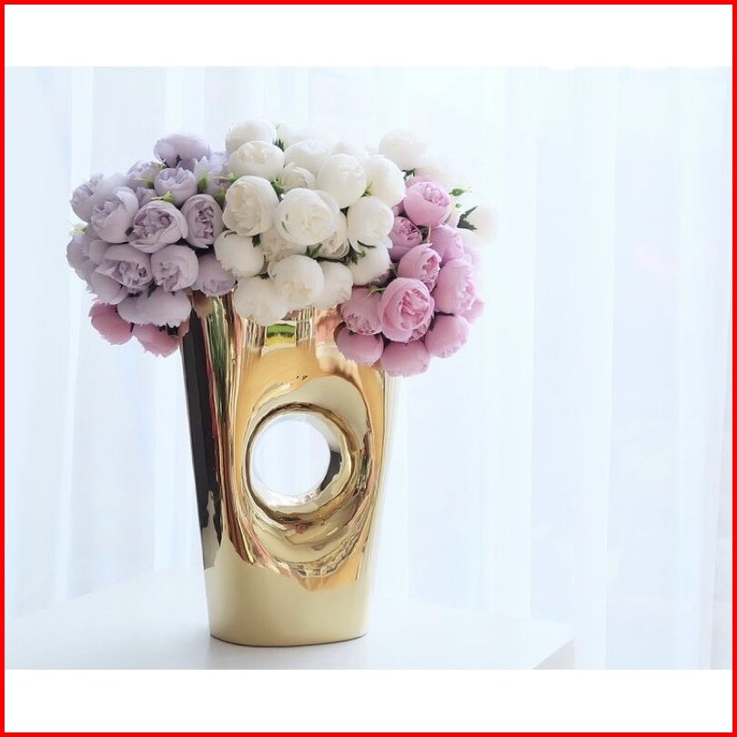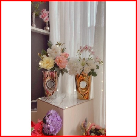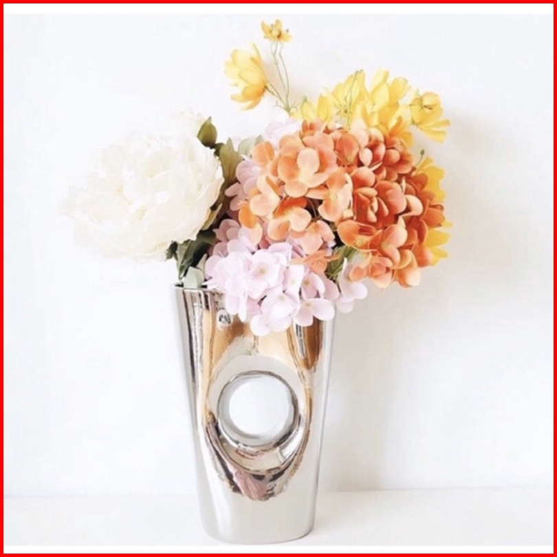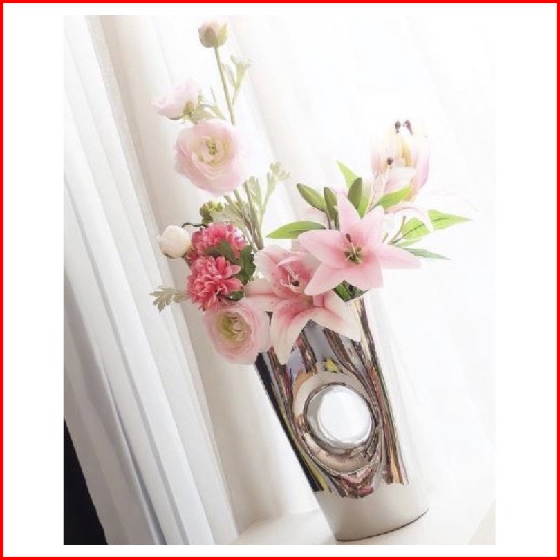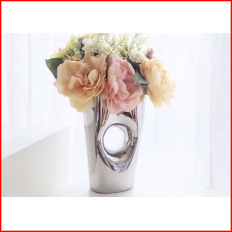 Vas Bunga Keramik Dekorasi Silver - Doha