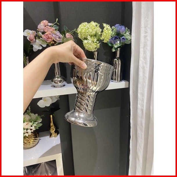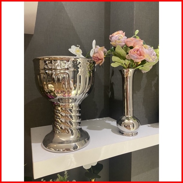 Vas Bunga Keramik Dekorasi Silver - Sudan