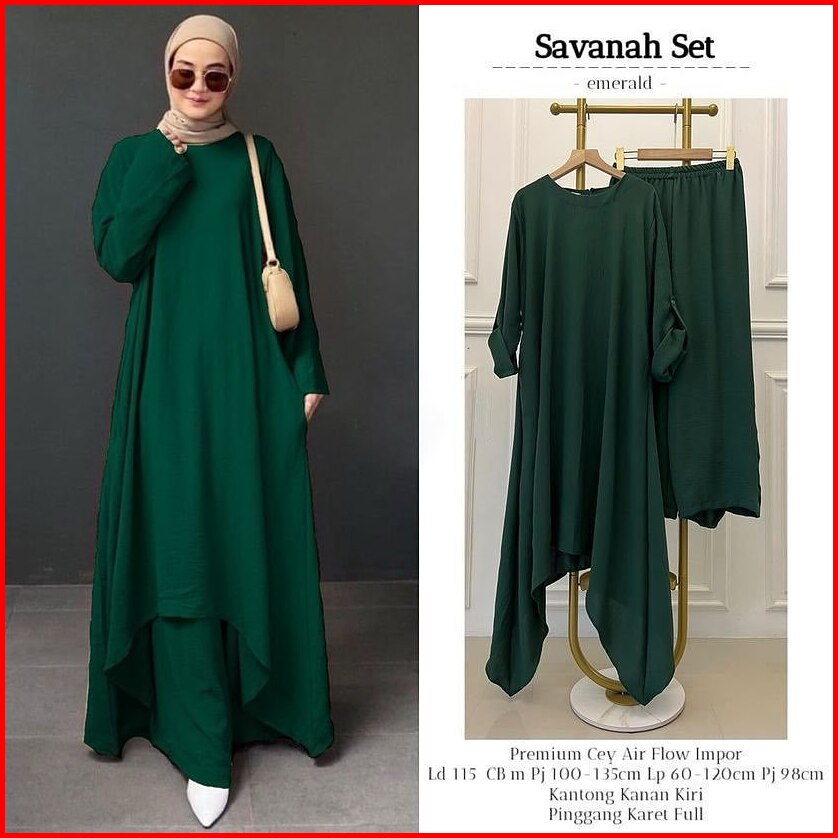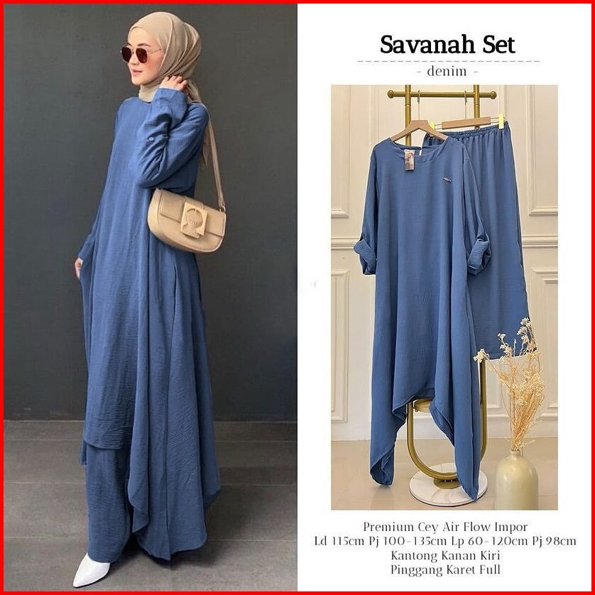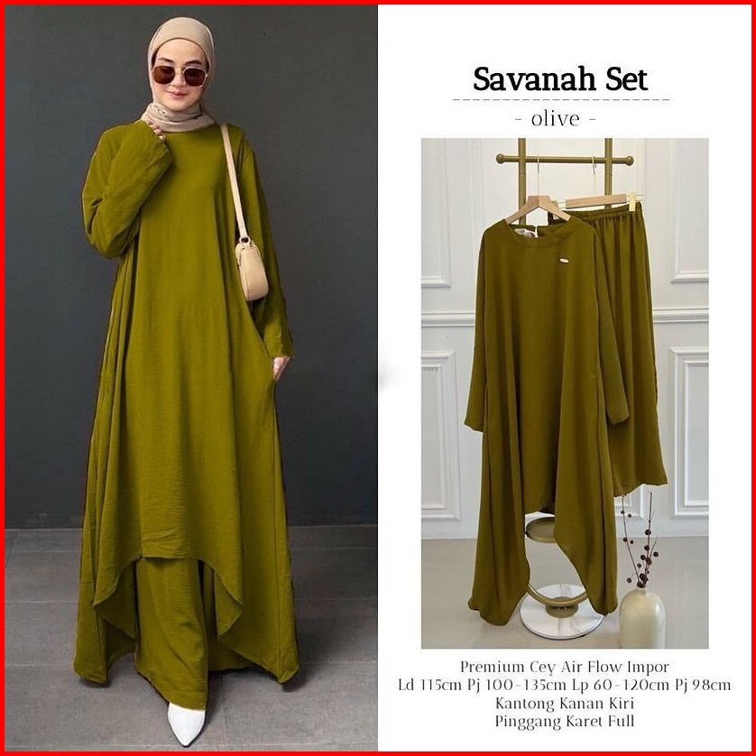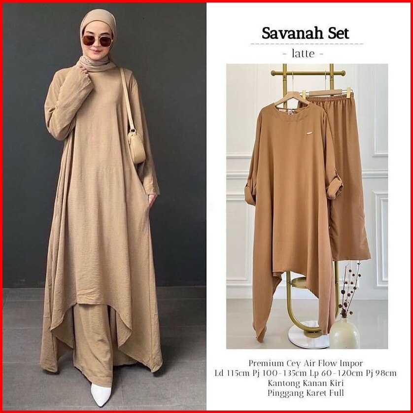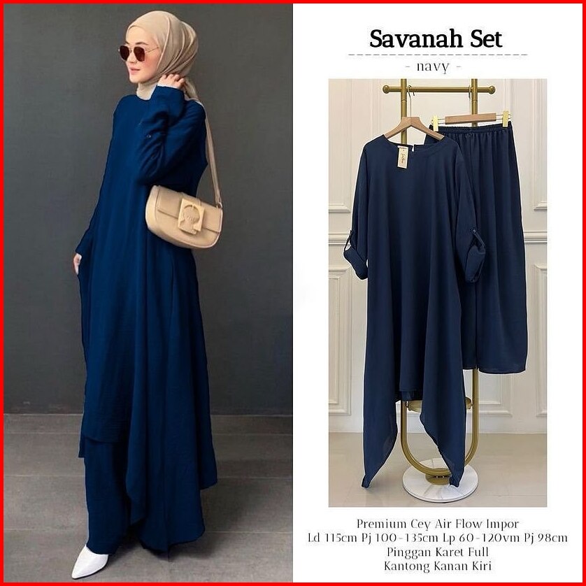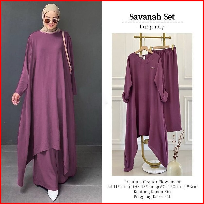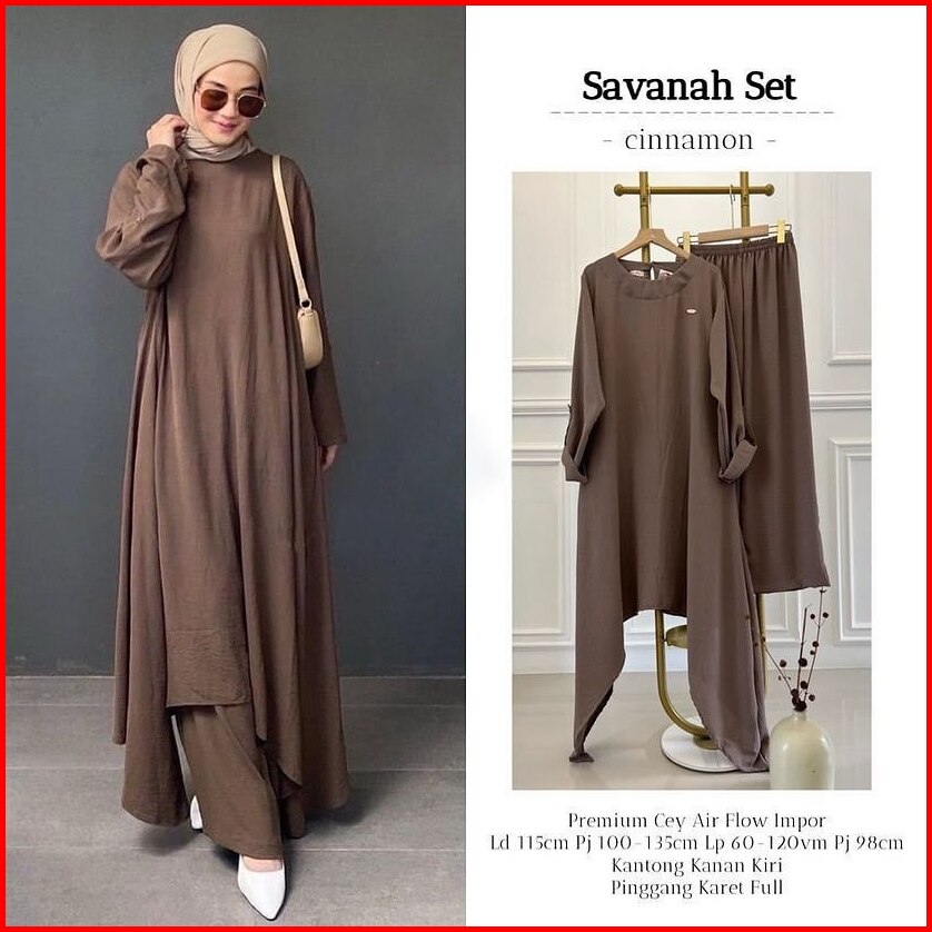 Savanah Set One Set 2in1 Kekinian Tunik Celana Bahan Cey Airflow Ootd Wanita Terbaru 2024 Sf