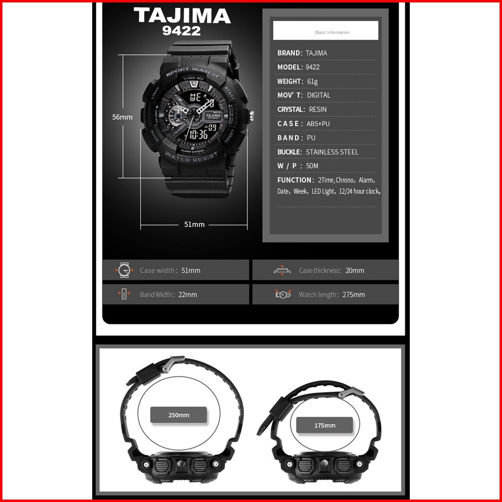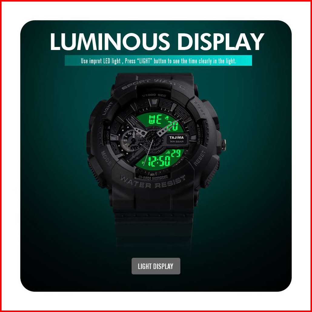 Tajima Jam Tangan Analog Digital Sports 9422 Tahan Air 50 Meter Garansi 1 Tahun Free Box