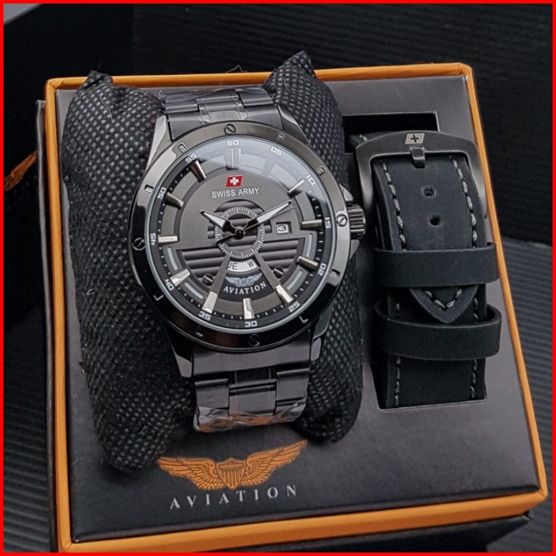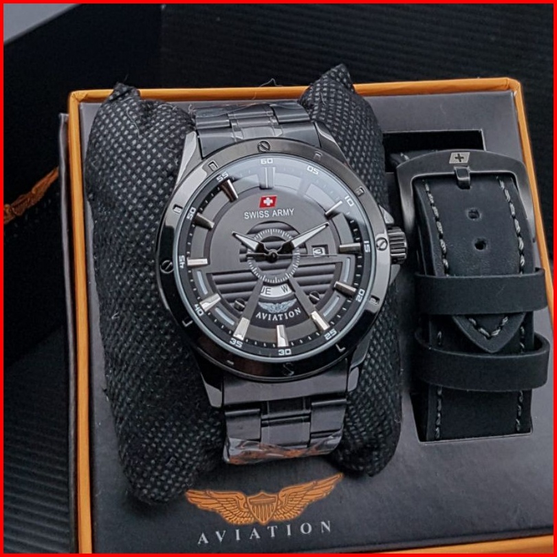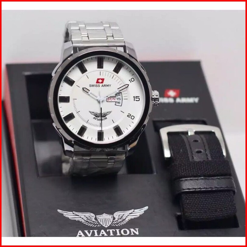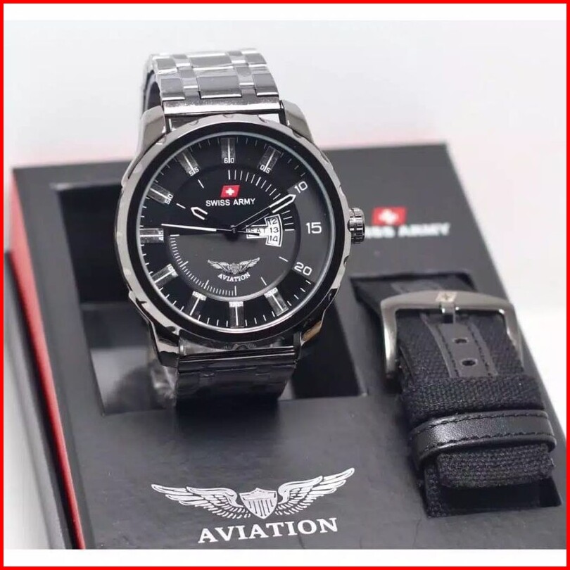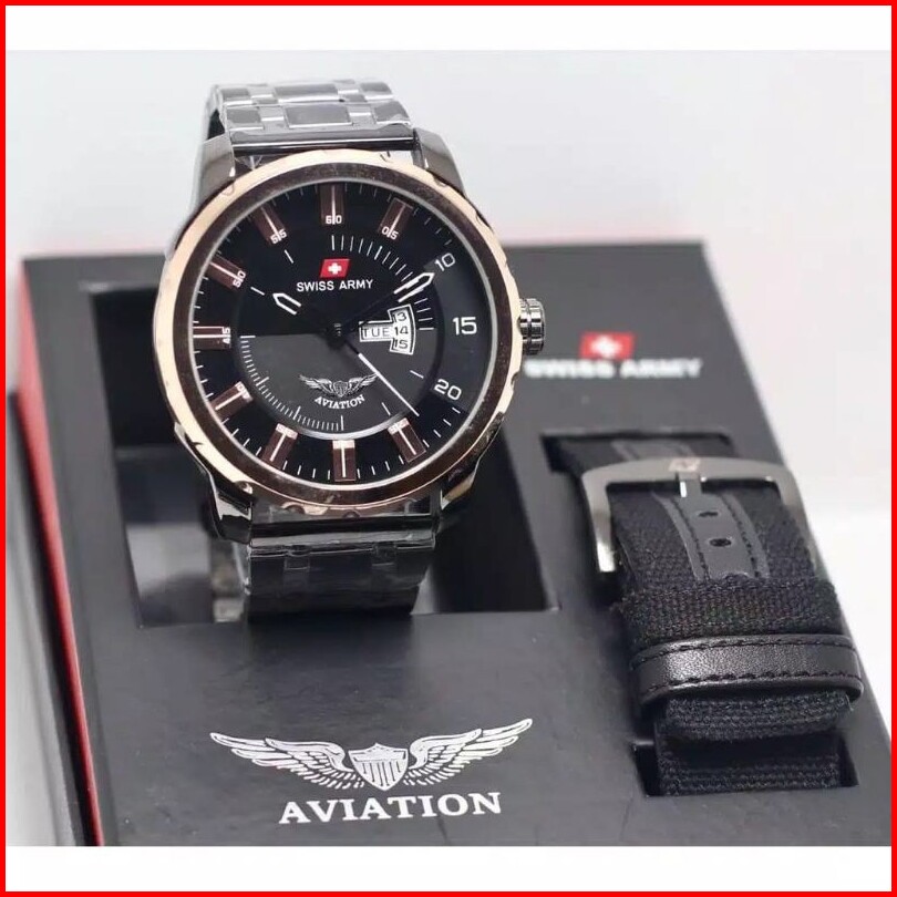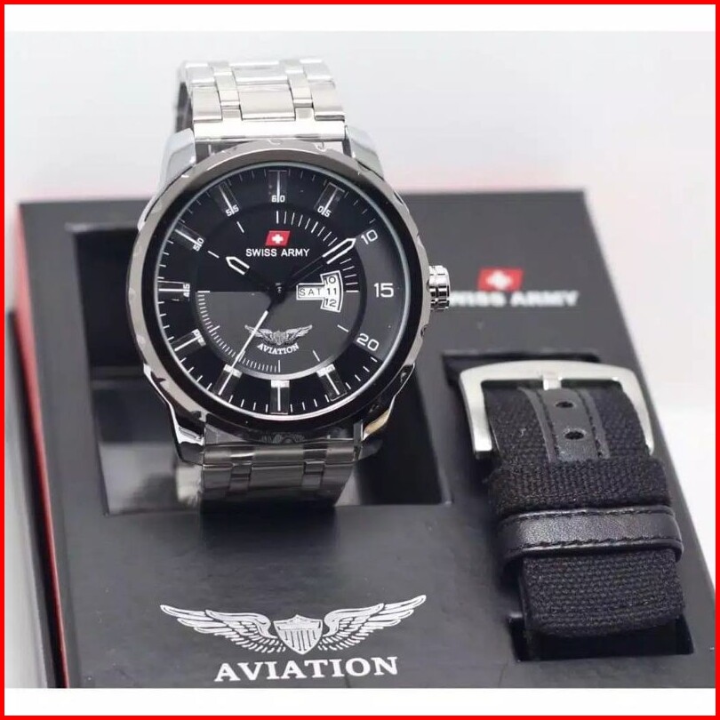 Best Seller Jam Tangan Pria Swiss Aviation S275 Elegan Rantai Stainless Free Baterai Box