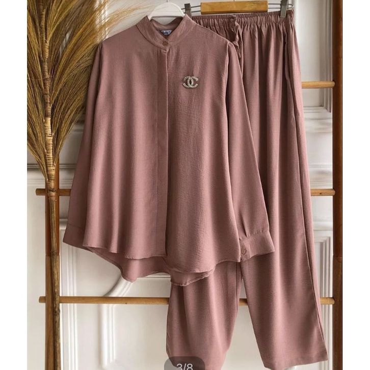 (FREE ONGKIR) HANNA SET/SETELAN CRINKLE AIR FLO LD 110CM/ONE SET JUMBO 120CM/SETELAN KEKINIAN/BAJU KEMEJA WANITA MURAH
