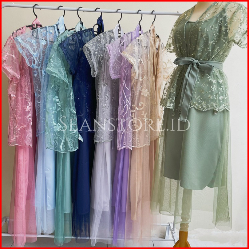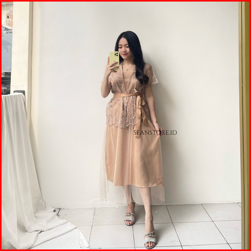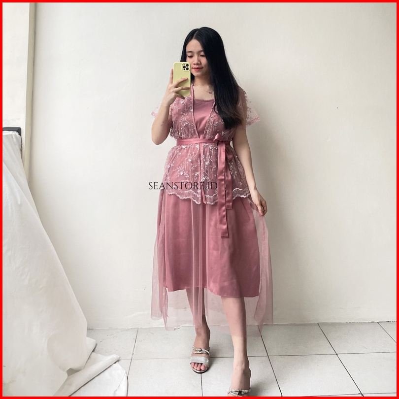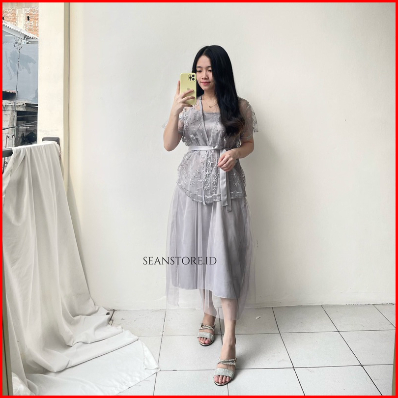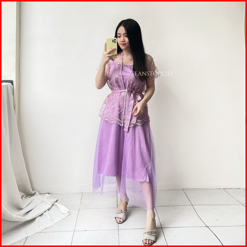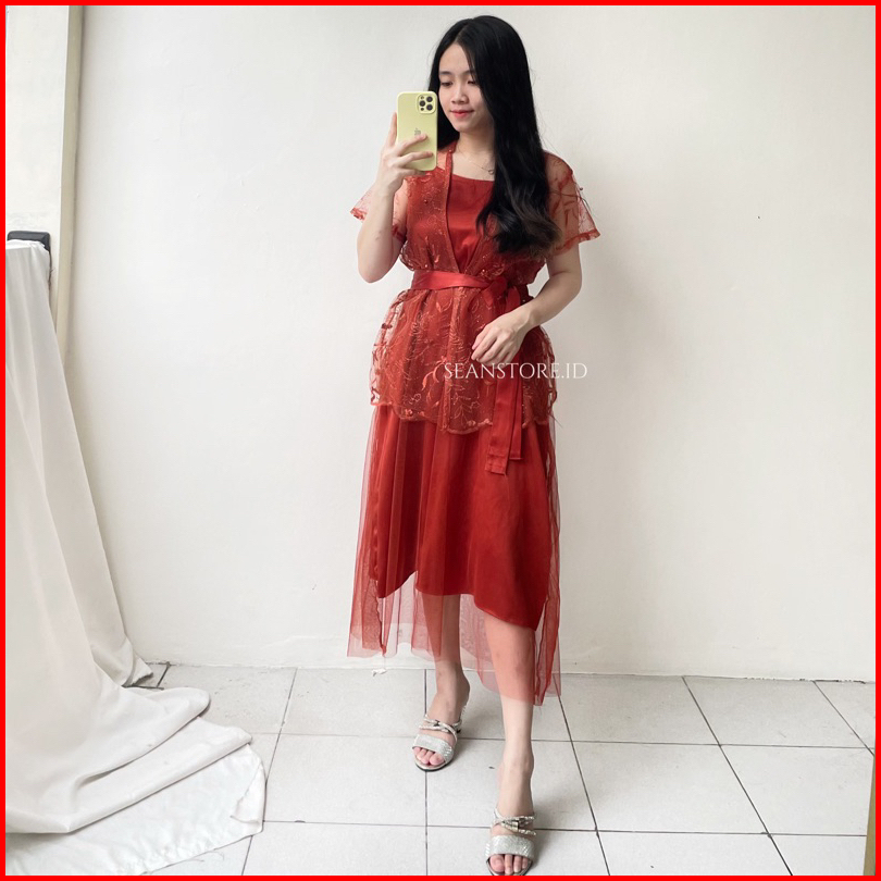 Set Grisya 3in1 Populer Dress Natal Tile Premium Inner Outer Dres Brukat Pesta Tile Bordir Dress Kondangan Dress Natal D