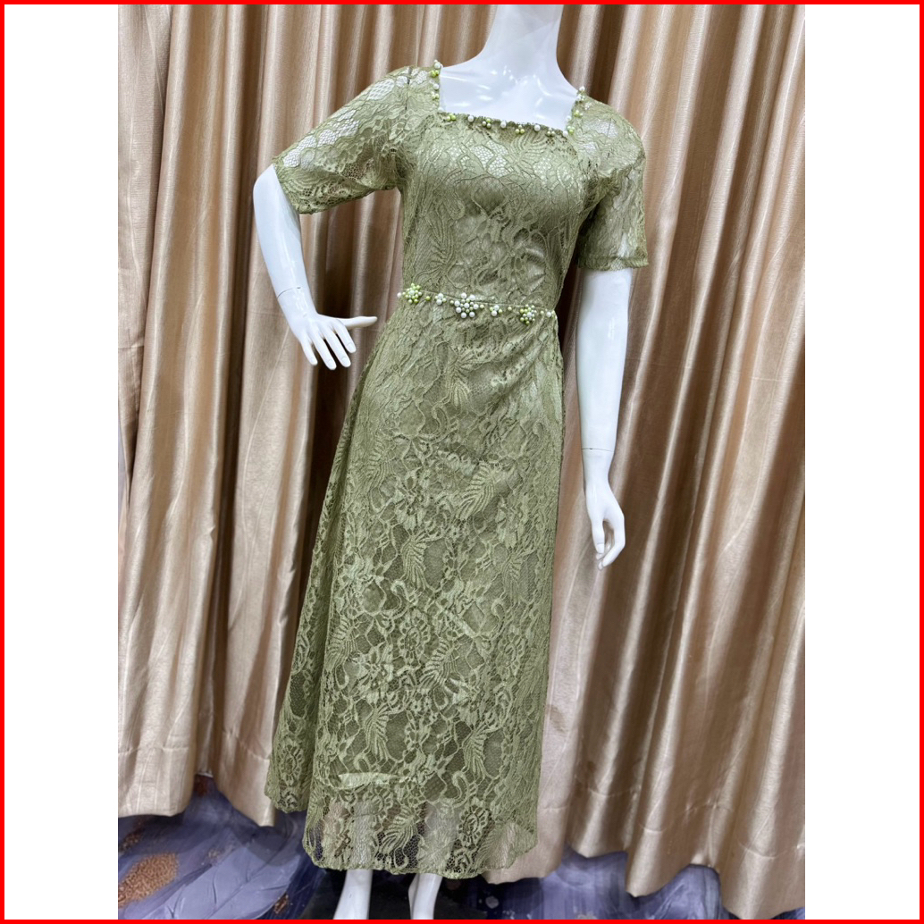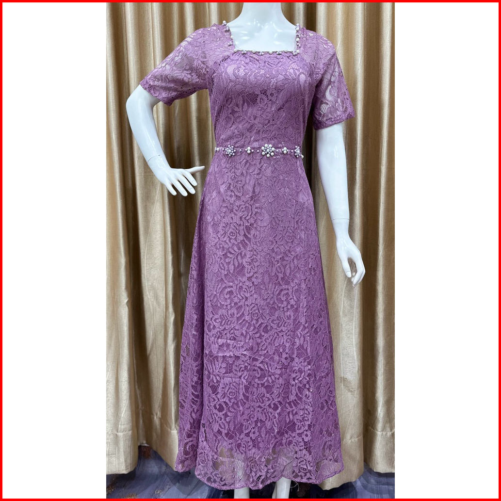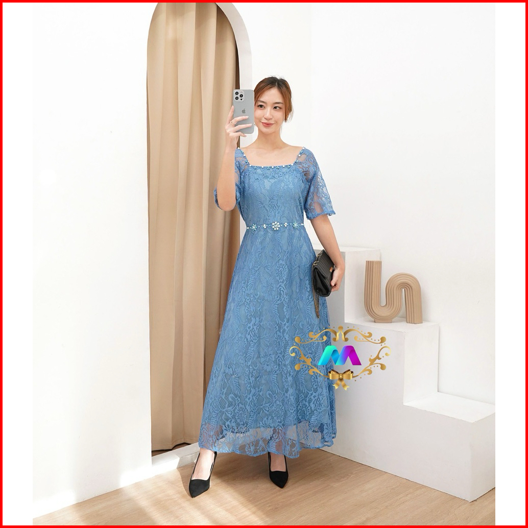 Caren Long Dress New Model - Dress Pesta Brokat Aplikasi Mutiara - Pakaian Kondangan Simple Dan Elegant