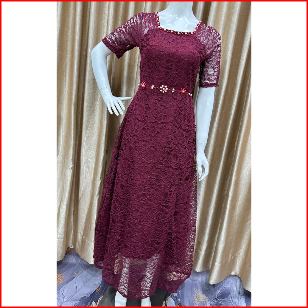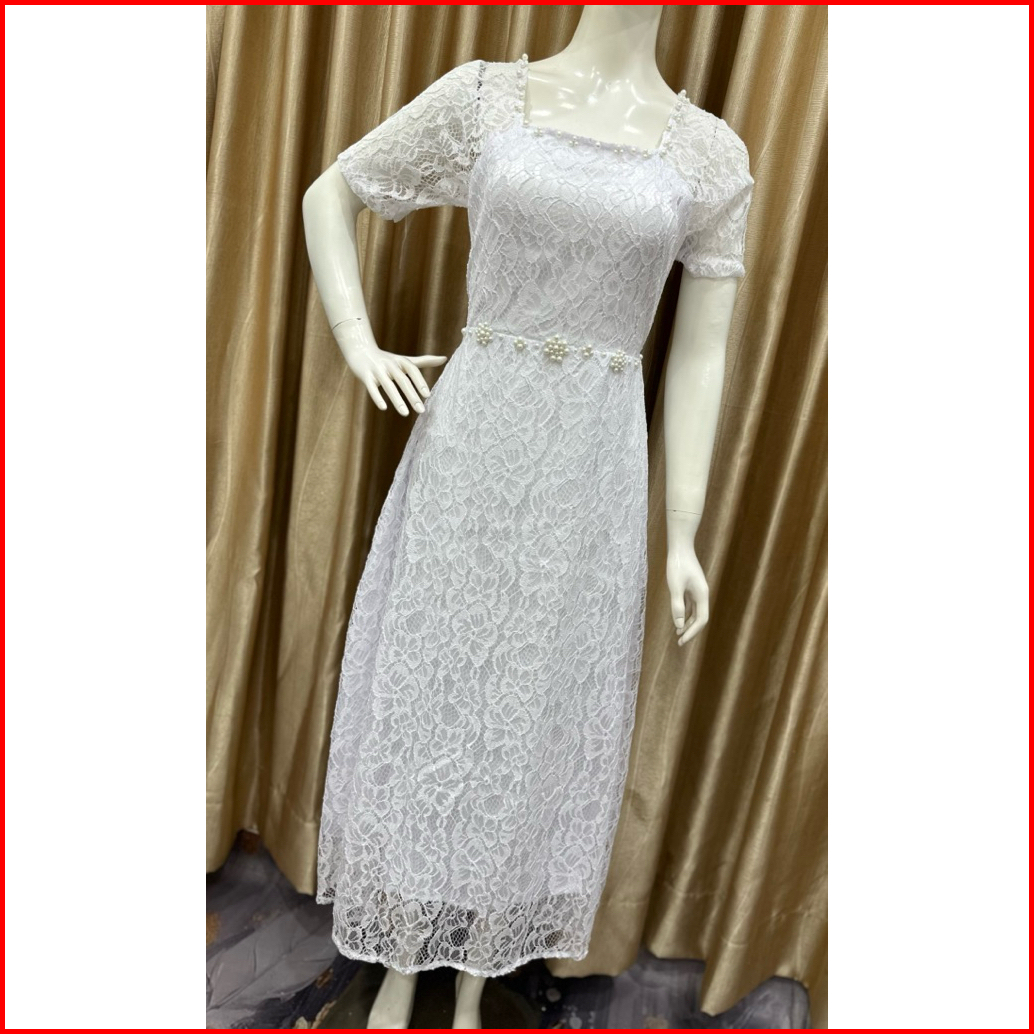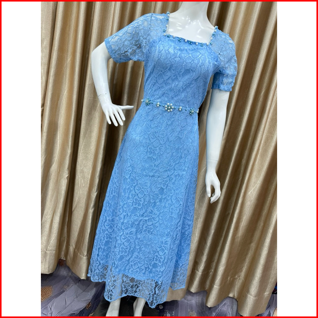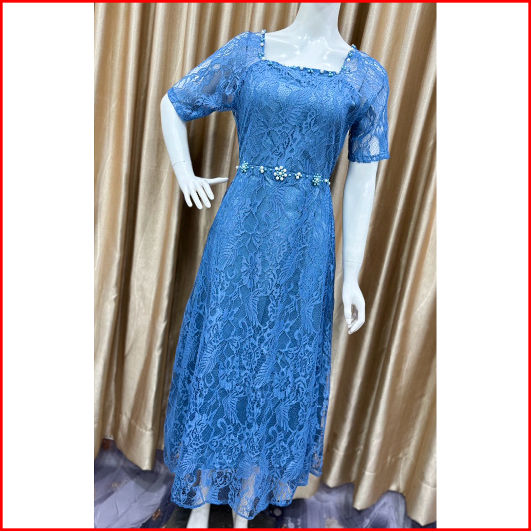 Caren Long Dress New Model - Dress Pesta Brokat Aplikasi Mutiara - Pakaian Kondangan Simple Dan Elegant