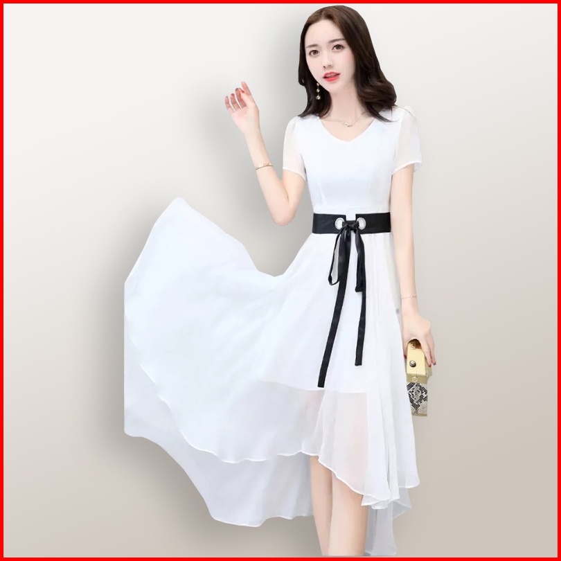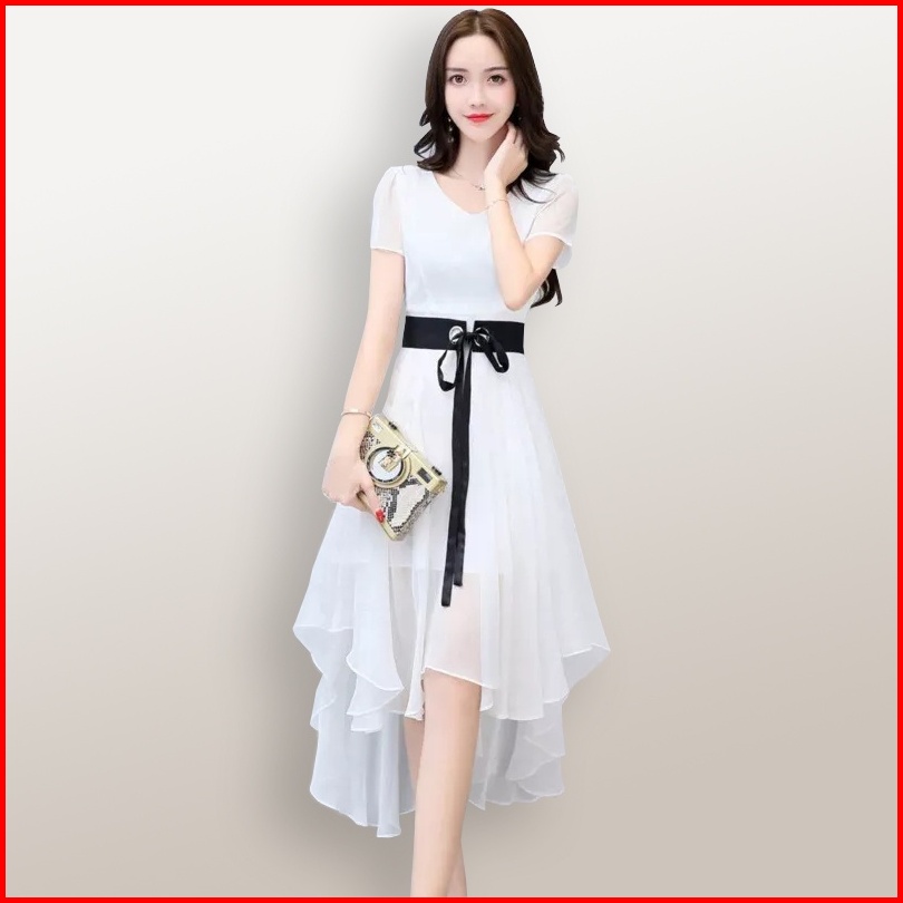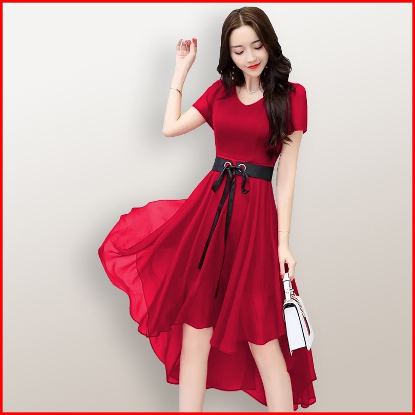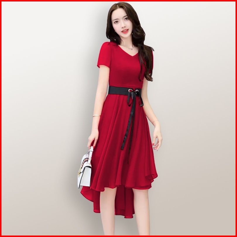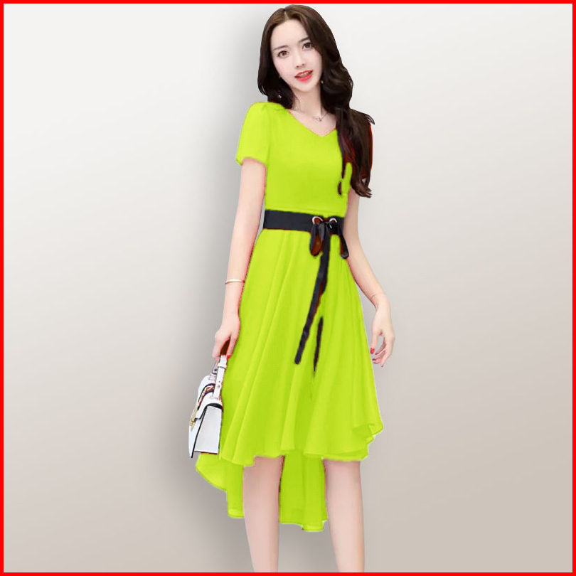 Midi Dress Lengan Pendek Sifon Wanita Gaya Korea Model Terbaru - Moody