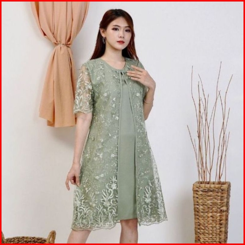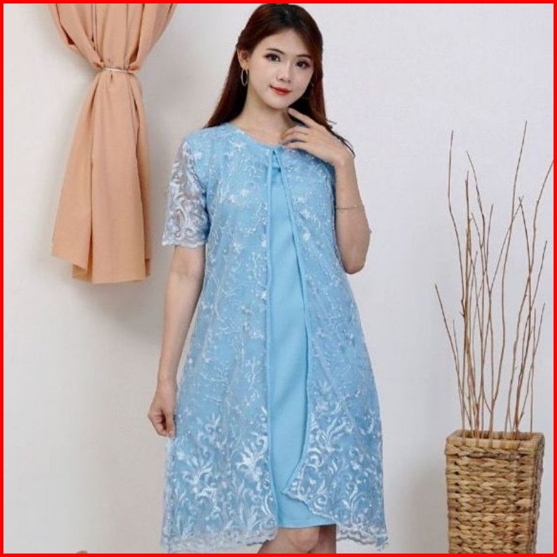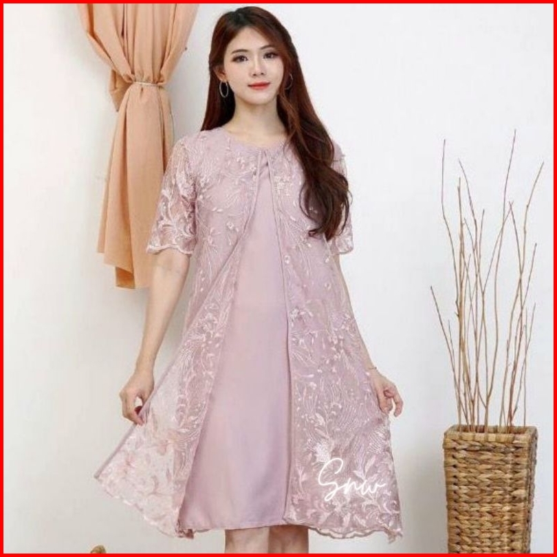 Dress Daisy Tile Bordir Brukat Gliter Mutiara Dress Pesta Mewah Elegan Kekinian