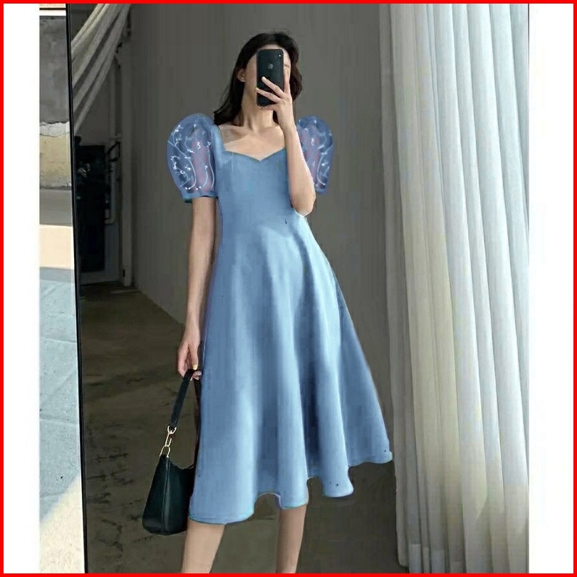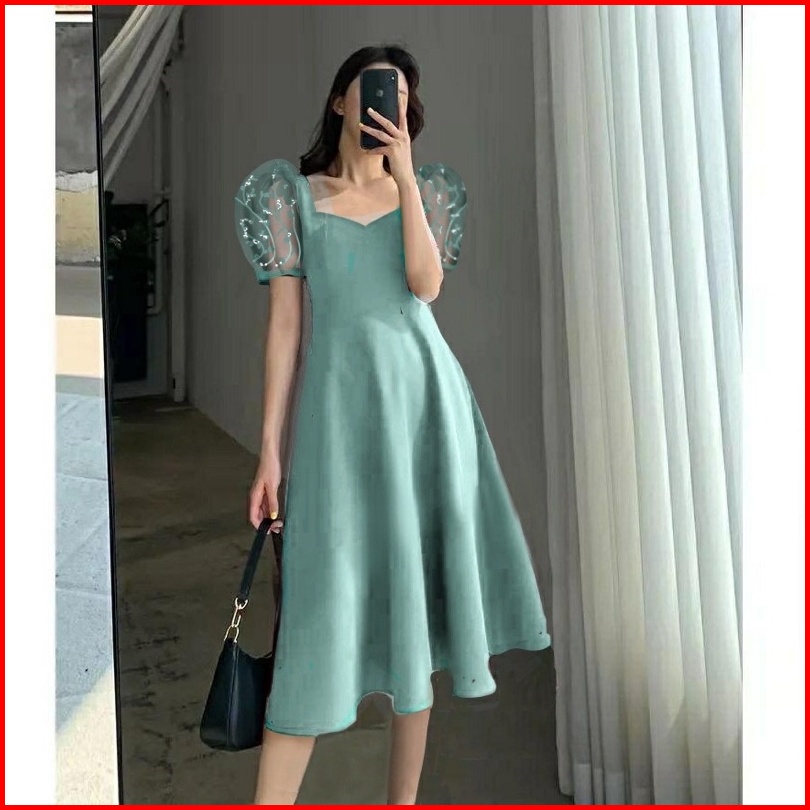 Dress Emily Scuba Kombinasi Lengan Tile Mutiara