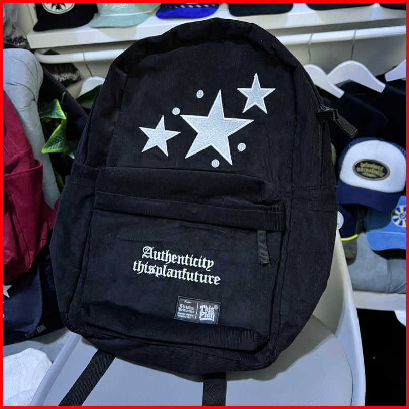 Tas Punggung Tas Ransel Backpack Corduroy Star Old Black Thisplan