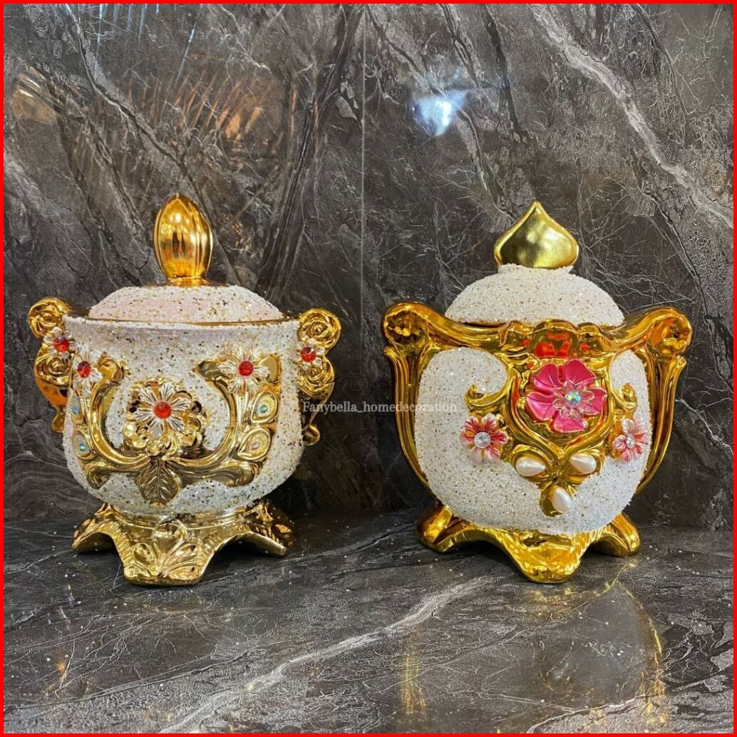 Pajangan Keramik Toples Saji Random Serbaguna Glitter Import Dekorasi Rumah