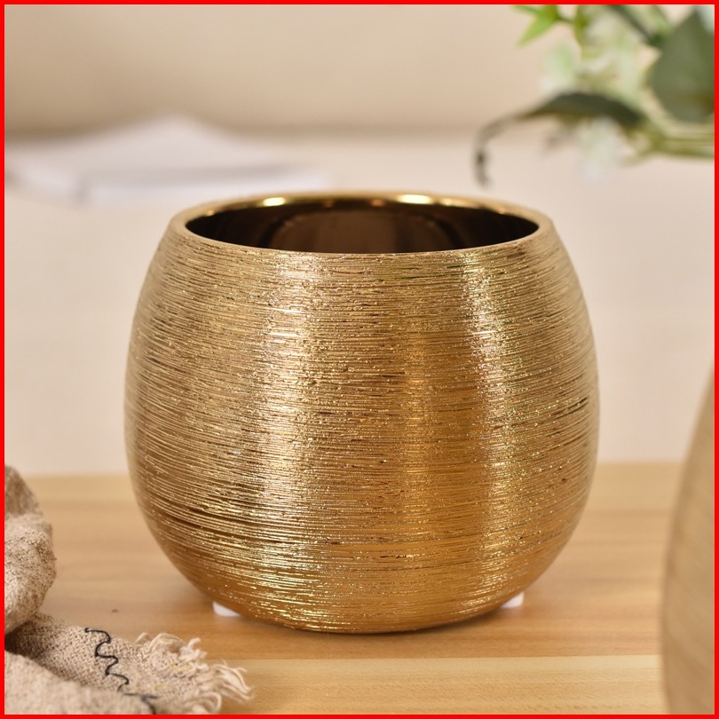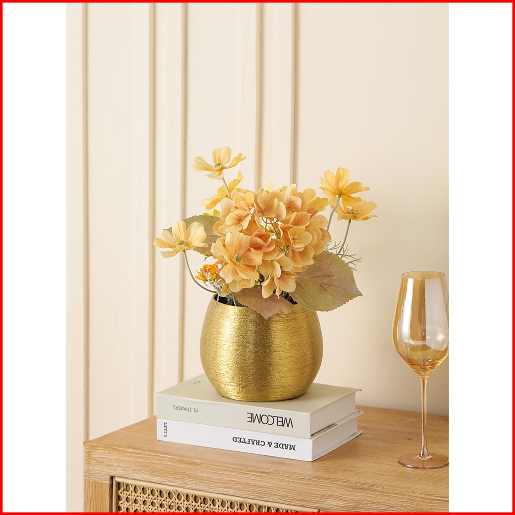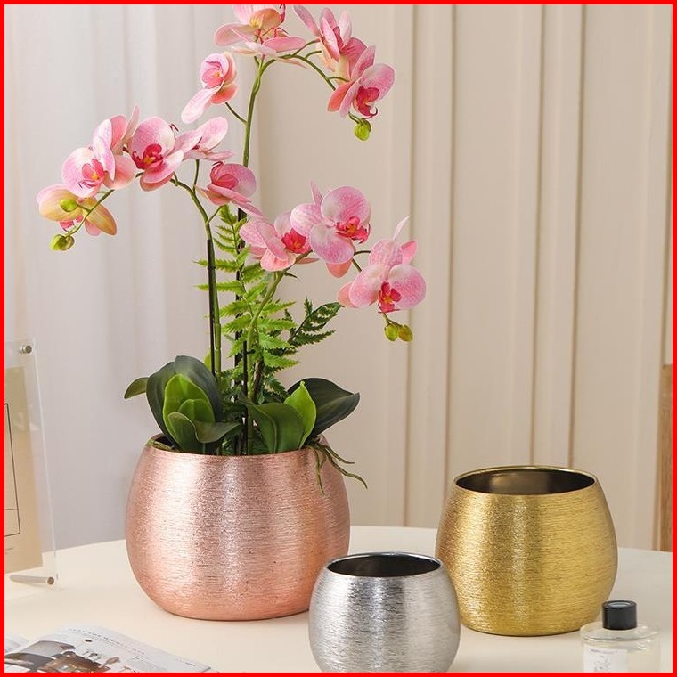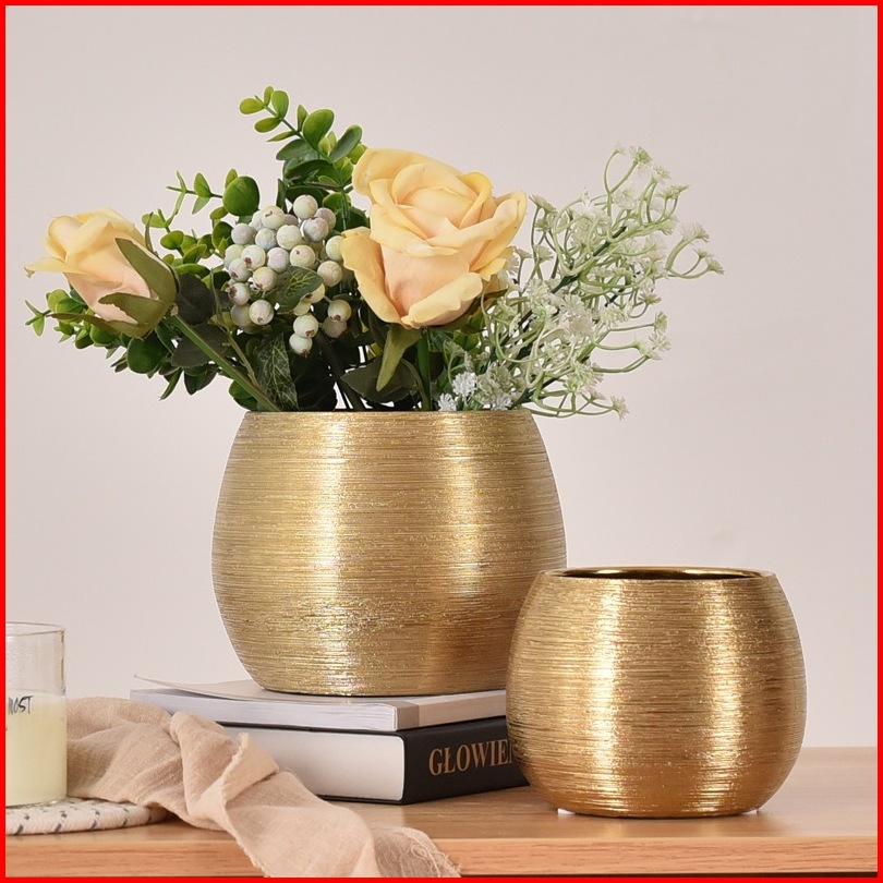 Pot Bunga Berlapis Bergaya Eropa Ruang Tamu Ornamen Vas Pot Bungagold-plated Ceramic
