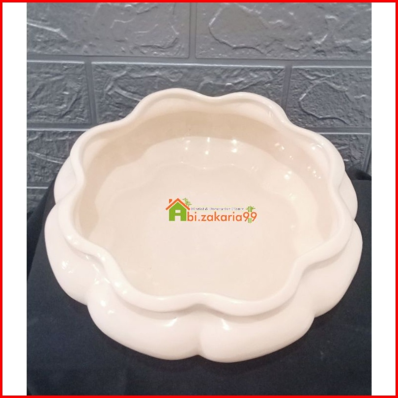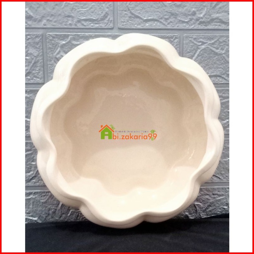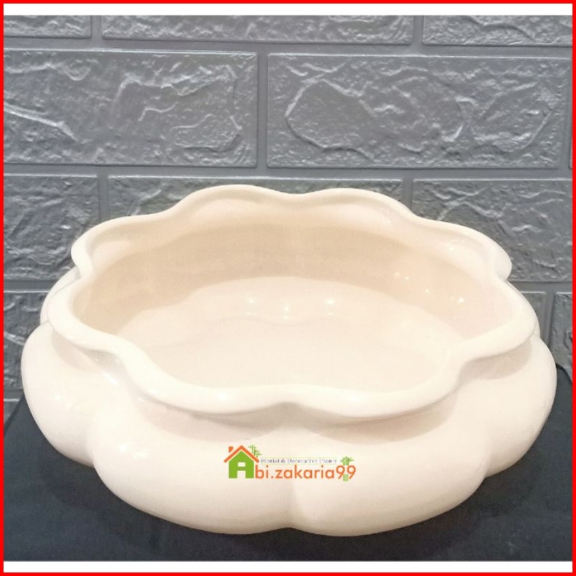 Vas Keramik Putih Bunga Artificial Model Ceper Lebar